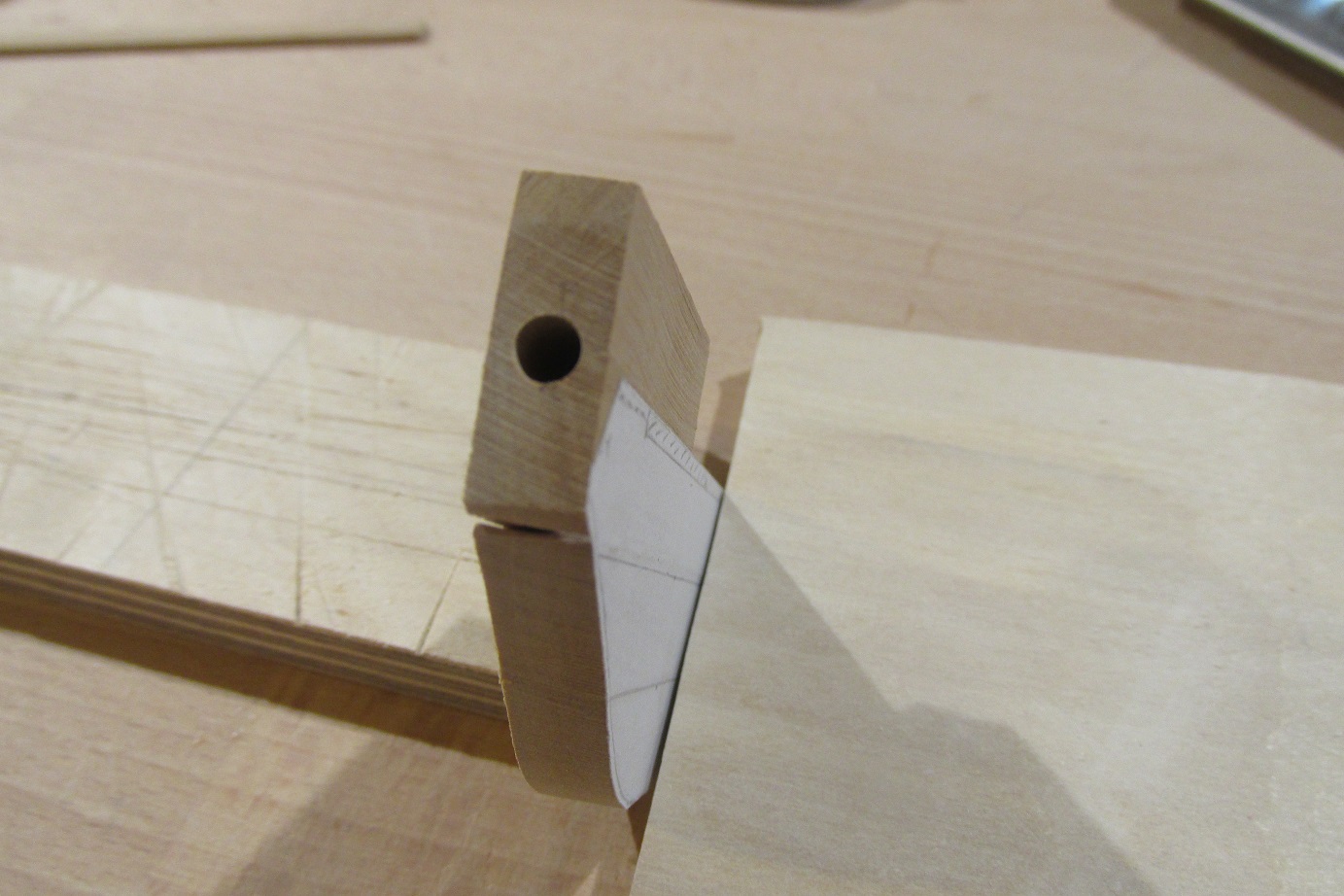 Pomiędzy naddatkiem a właściwym sterem nawierciłem otwór.