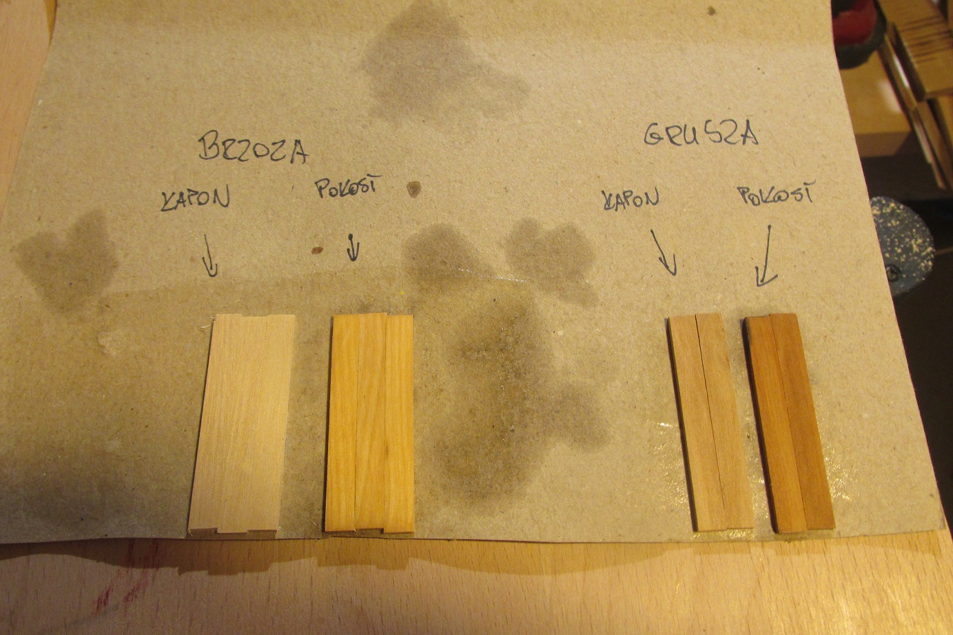 Robiłem wcześniej testy wypełniania drobnych szczelin między plankami. Składniki to pył z gruszy (odzysk z ścierania listew na poszycie :-)) oraz kapon. Po szpachlowaniu trzeba odczekać aż masa zaschnie, potem delikatnie szlifuję i efekt jest zadowalający, przynajmniej dla mnie początkującego.