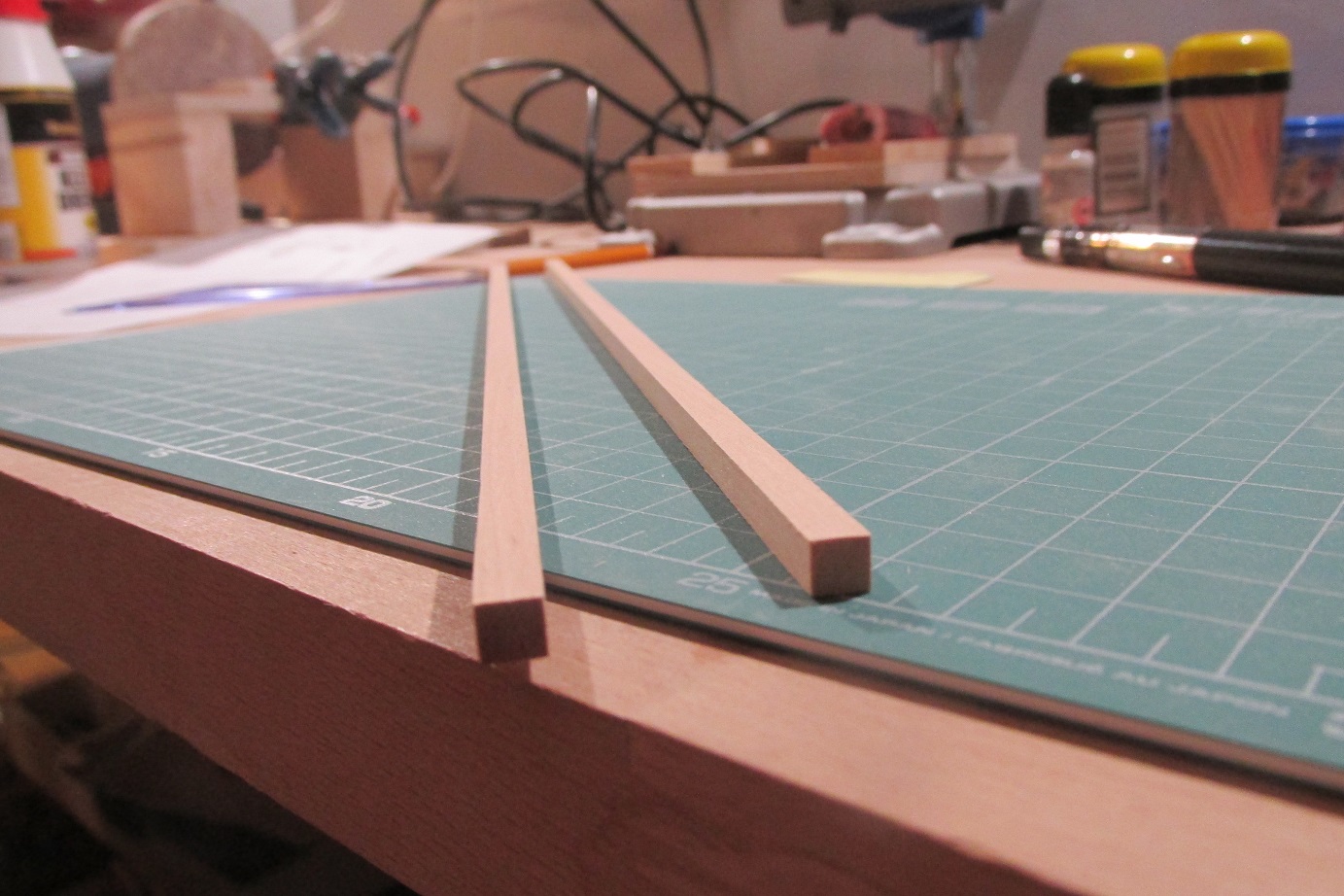 Zacząłem od przygotowania sobie listew 5x5 mm z olchy.
