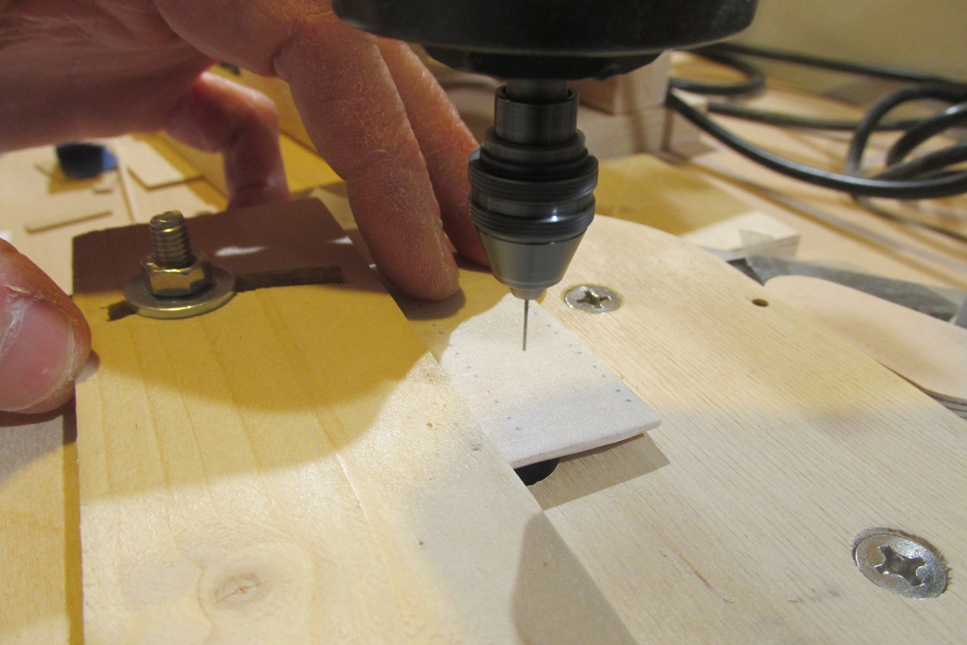 Wiercenie zrobiłem z użyciem drewnianej prowadnicy, stołu krzyżowego i mienia niet :-)