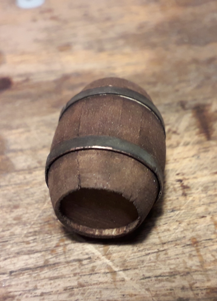 Nadal praca przy beczkach, zostały zabejcowane, bednarki poczernione: