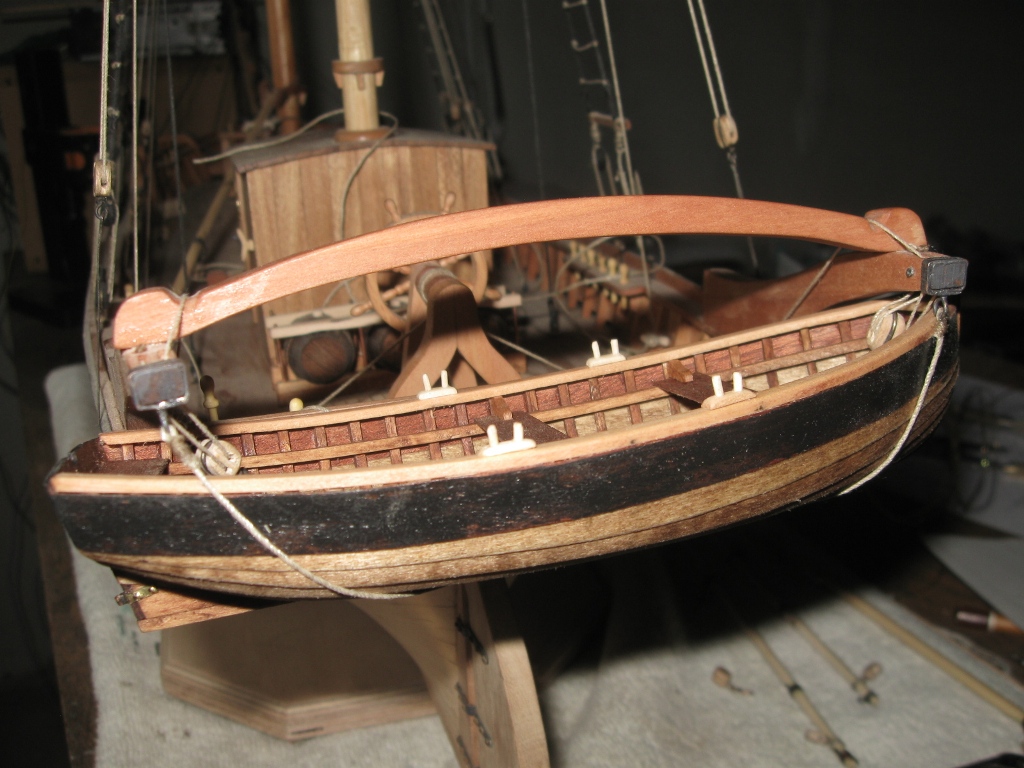 prace przy K&M zbliża się powoli do końca, na obecnym etapie zamontowałem na rufie szalupę: