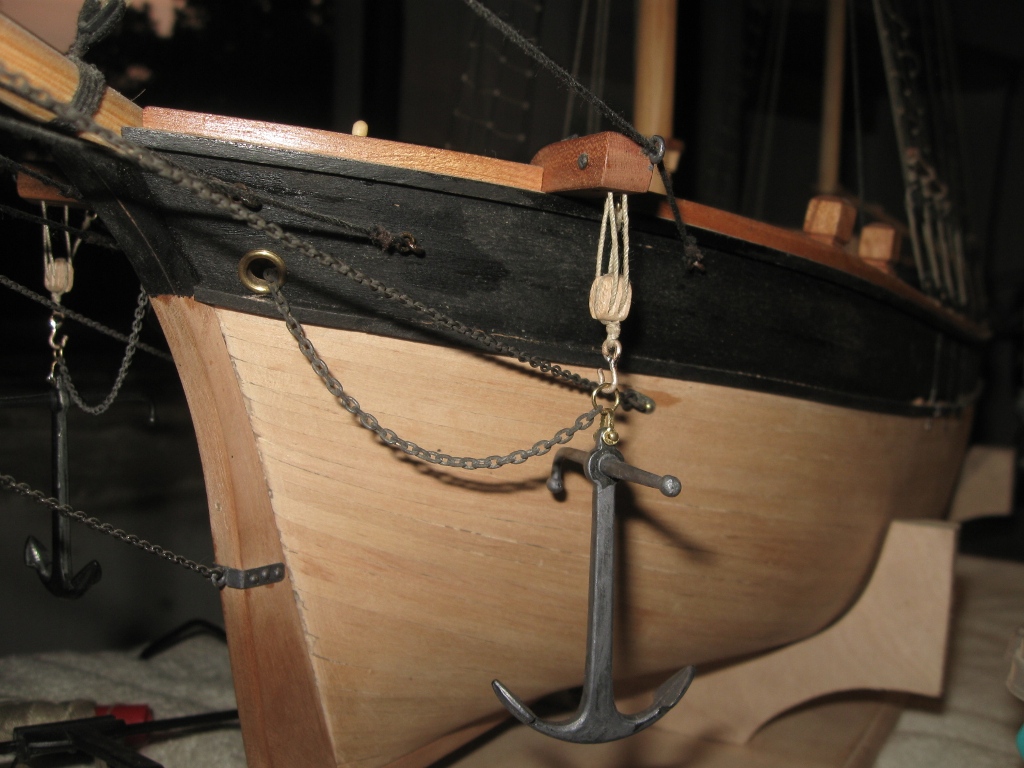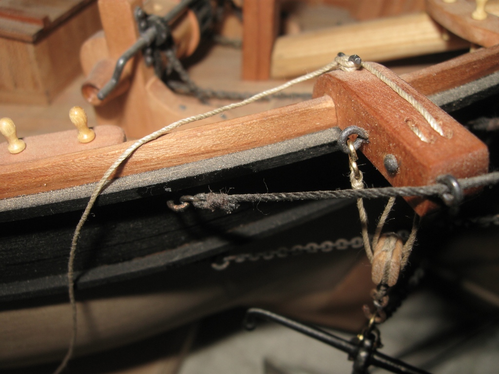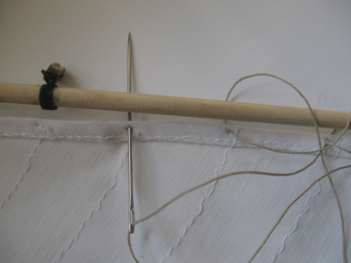 wracam do mojego modelu, poprosiłem siostrę o uszycie żagli, rozpocząłem zmagania z ożaglowaniem: