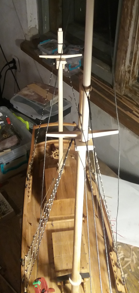 Grotmaszt i kolejne elementy olinowania stałego. Tym razem zamontowałem tylko parę topwant