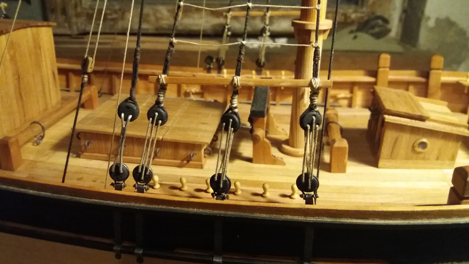 olinowanie stałe galeasa ukończone, poniżej kilka zdjęć z tego etapu pracy z modelem: