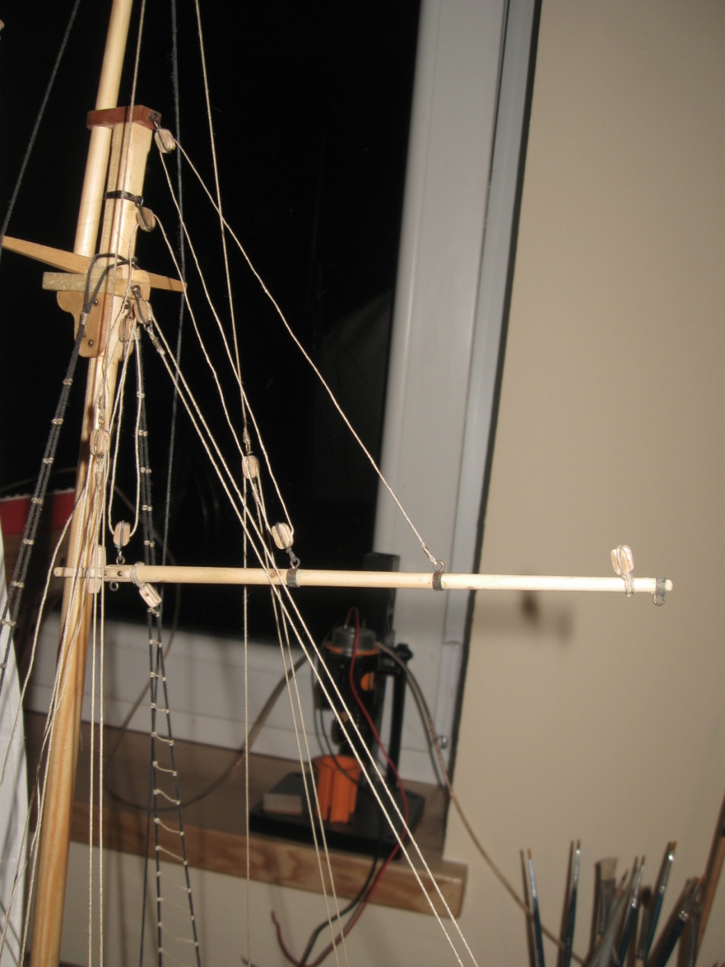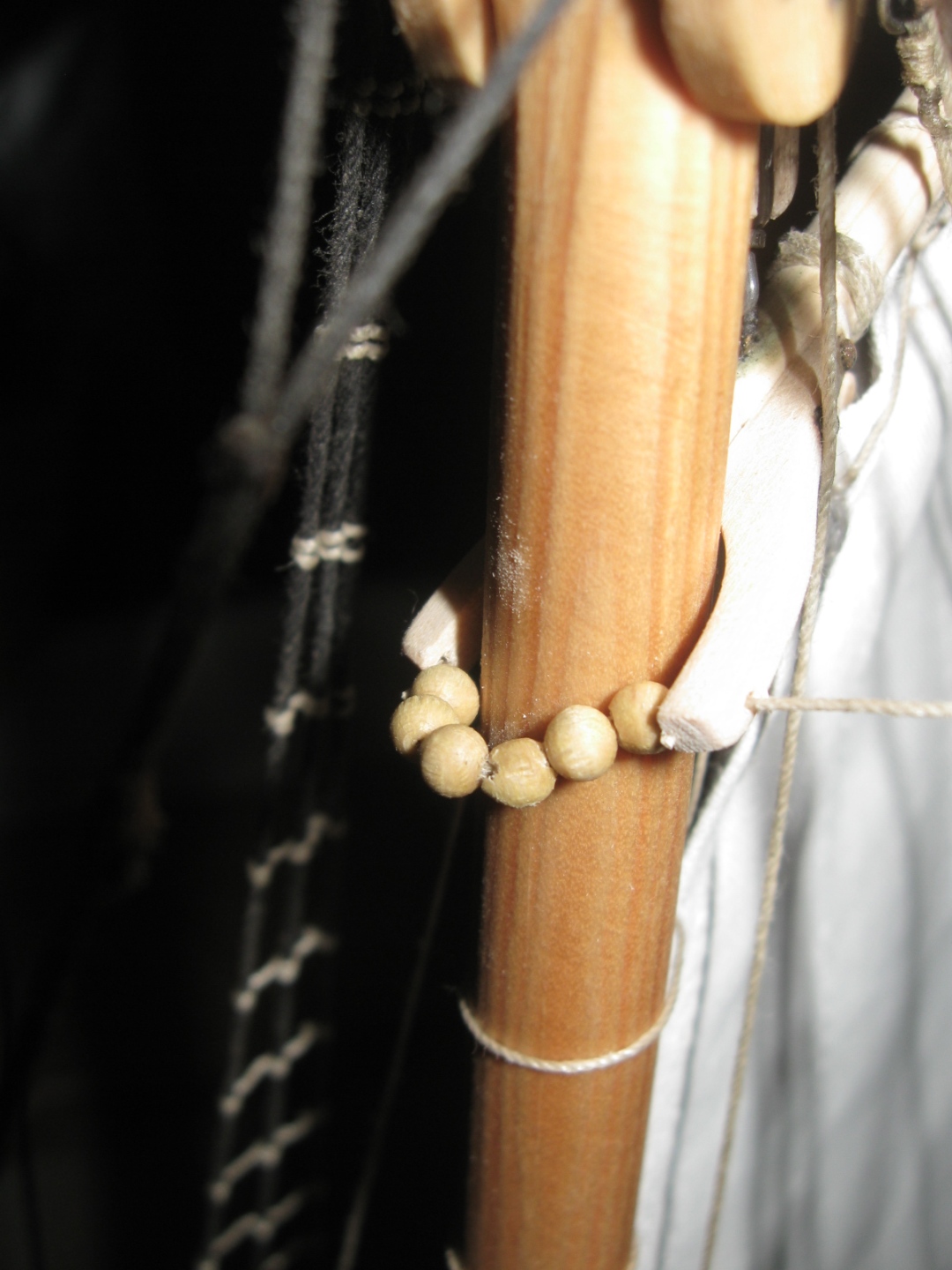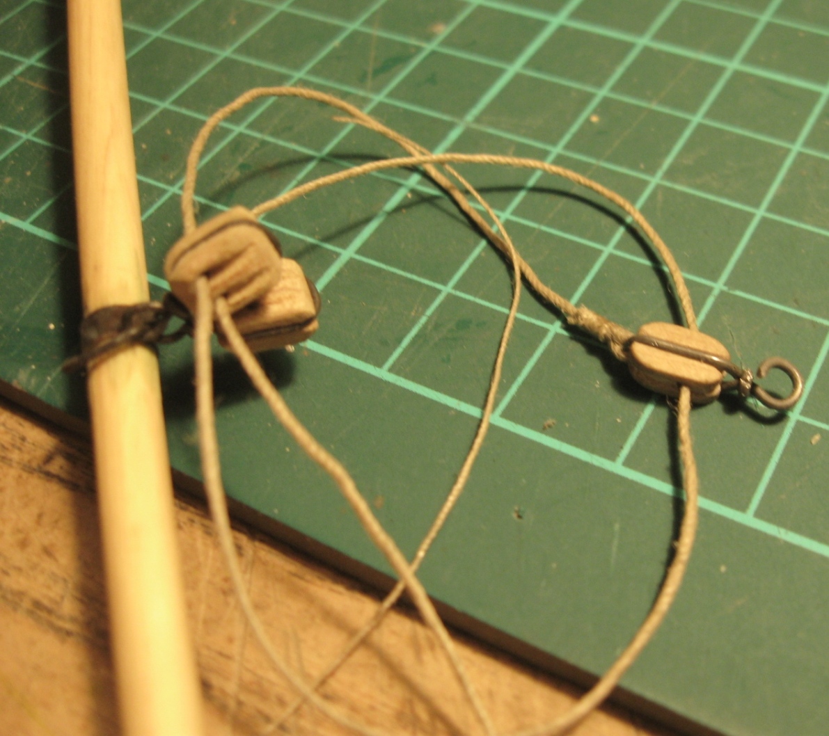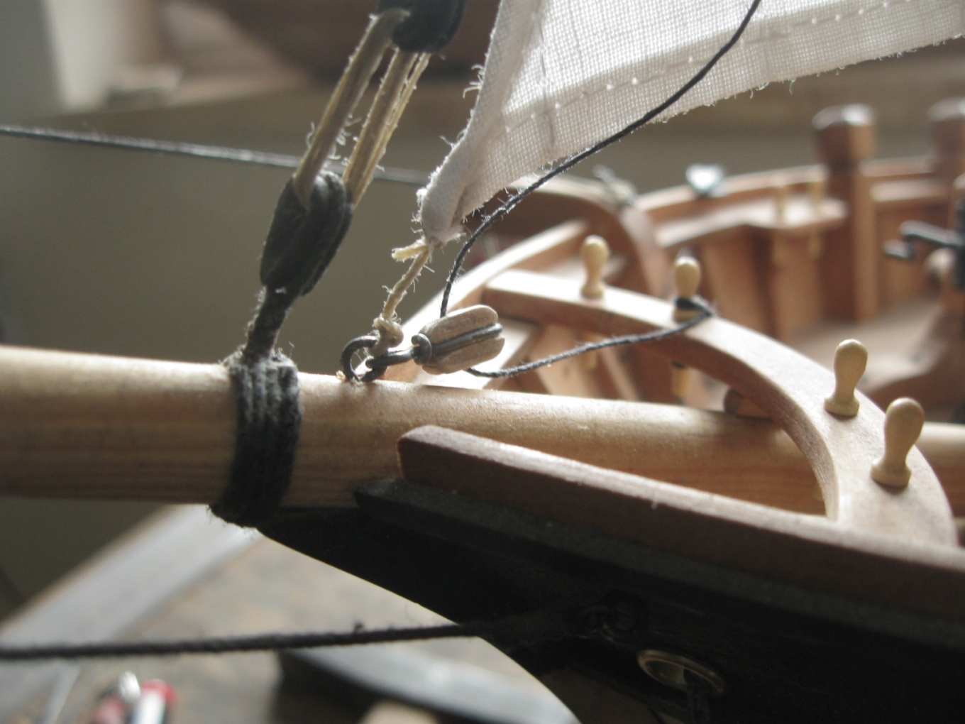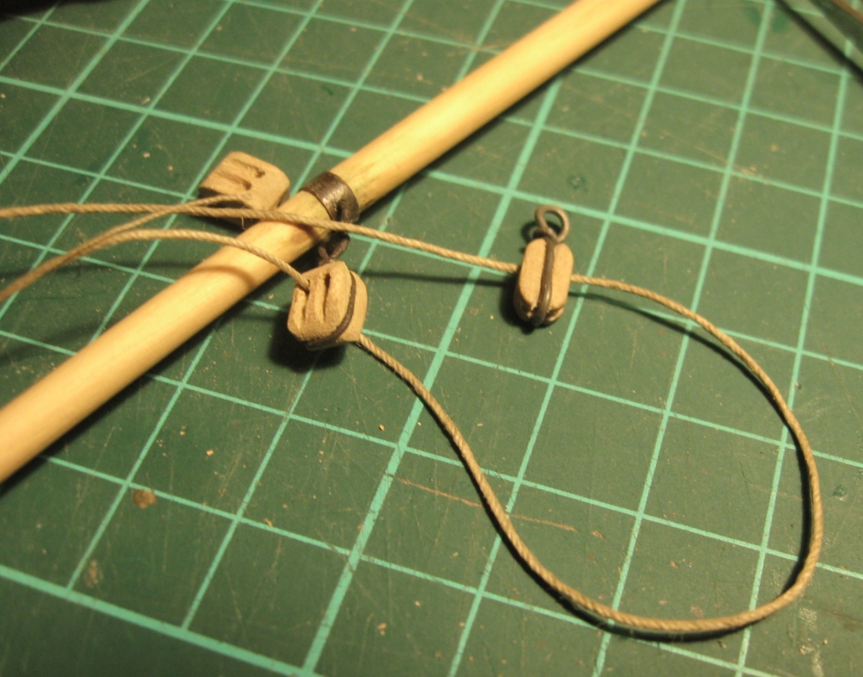 dziś zająłem się montażem i olinowaniem bomu oraz gafla bezana, szczegóły na zdjęciach: