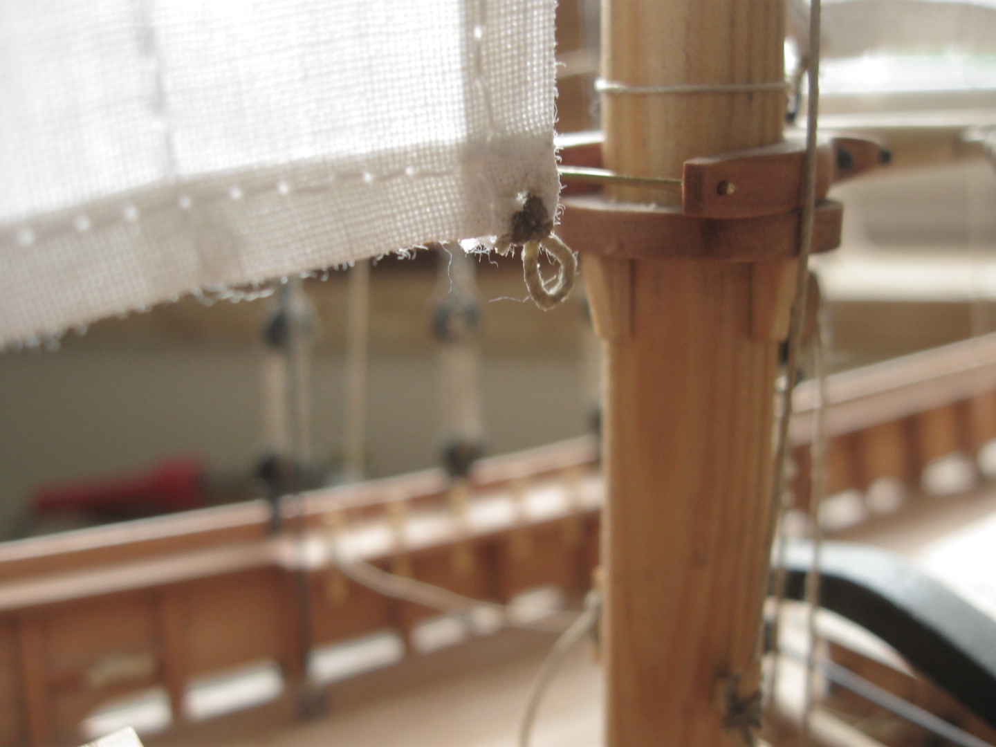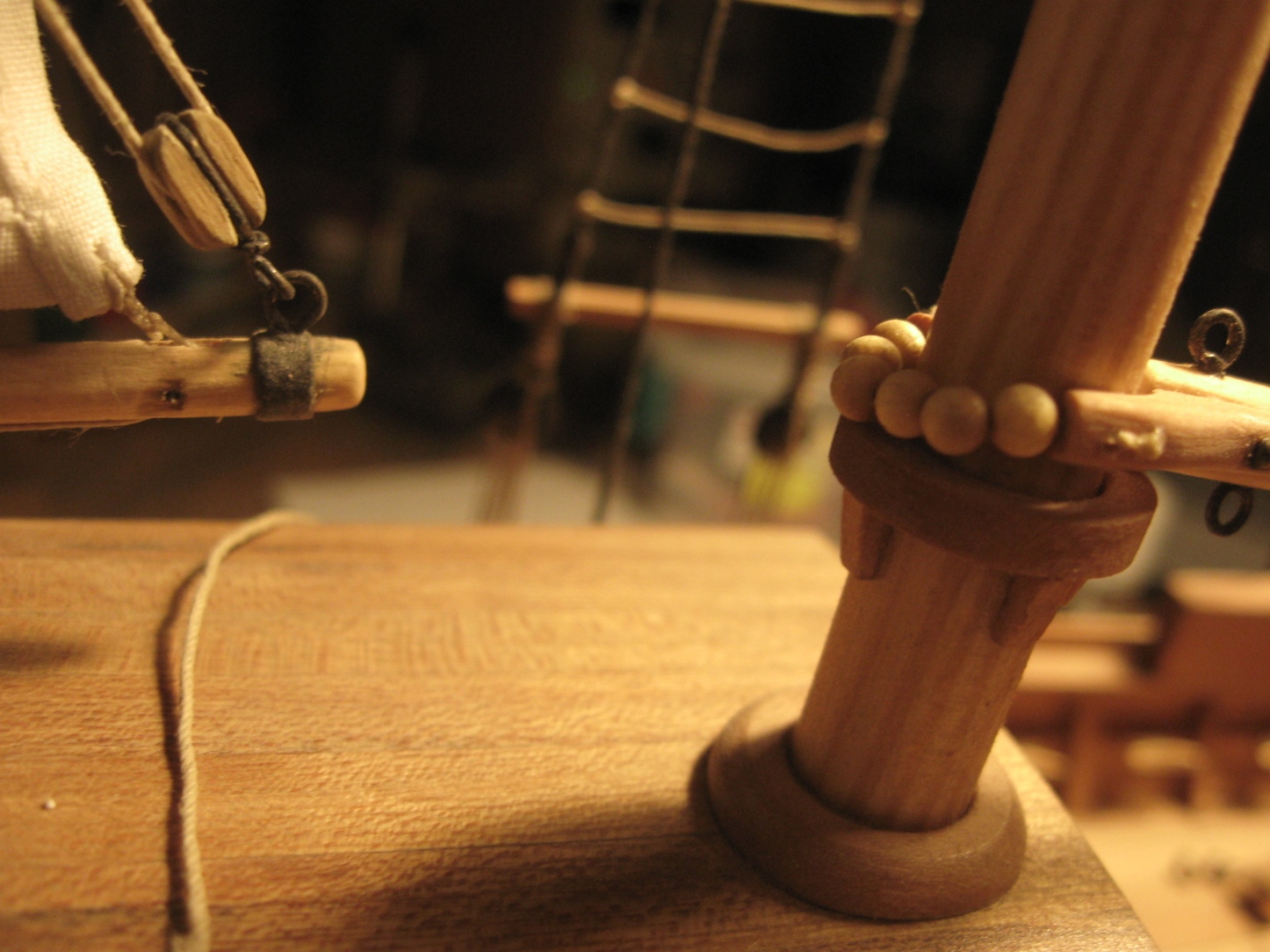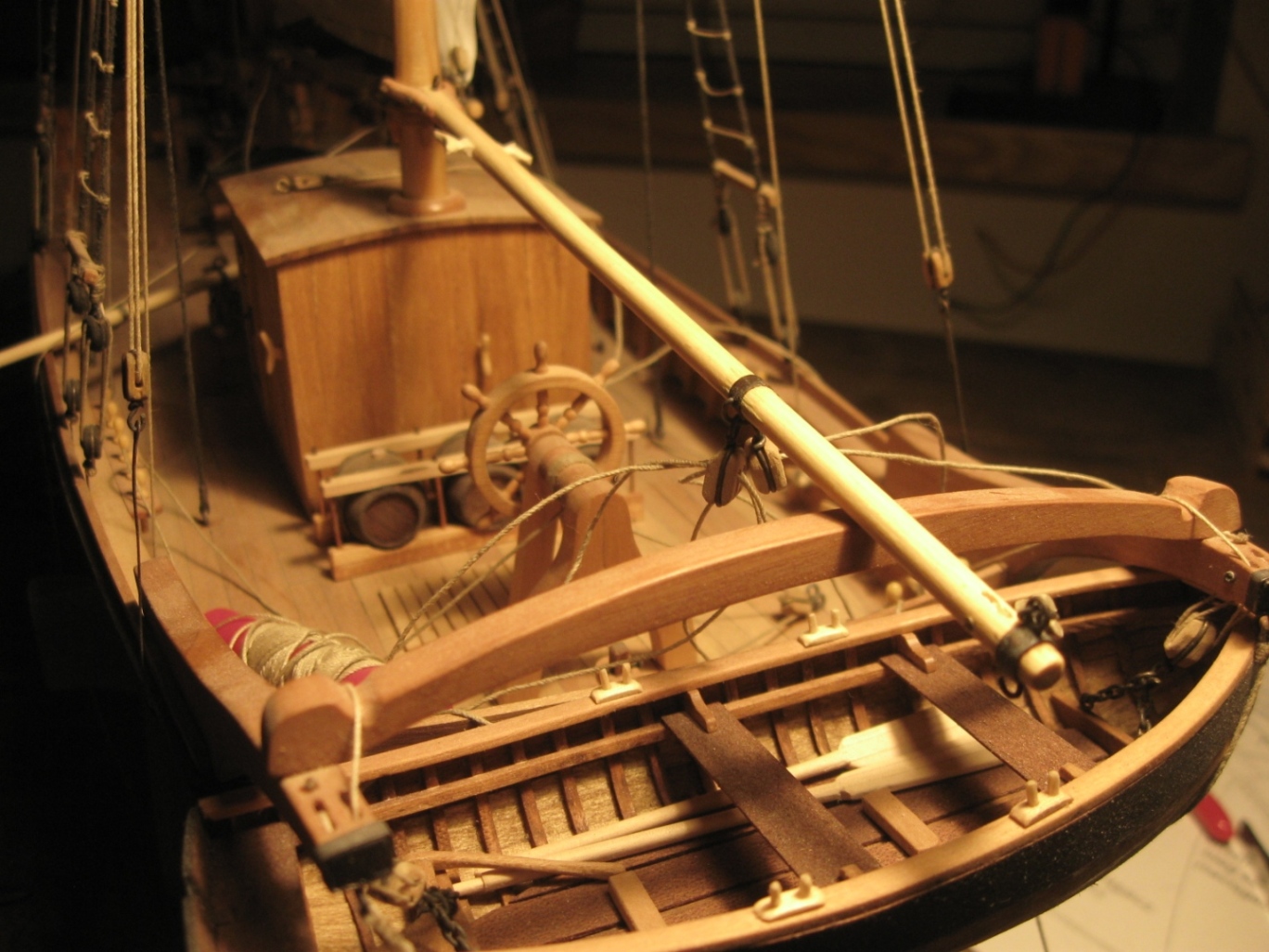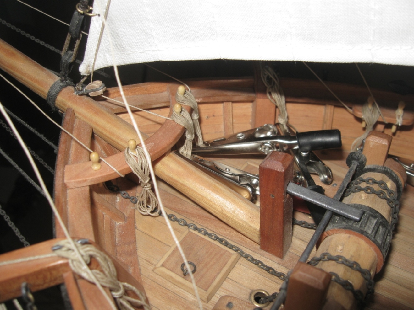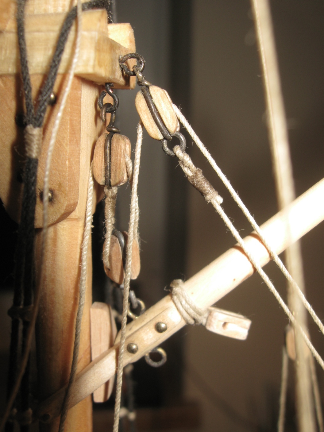 dziś zająłem się montażem i olinowaniem bomu oraz gafla bezana, szczegóły na zdjęciach: