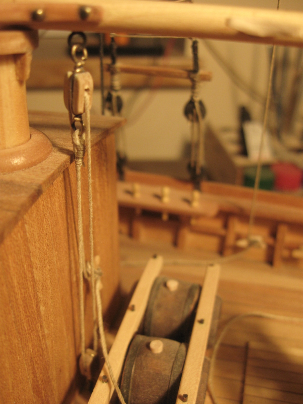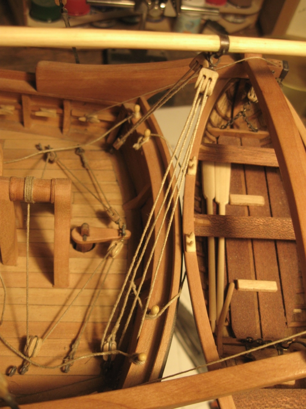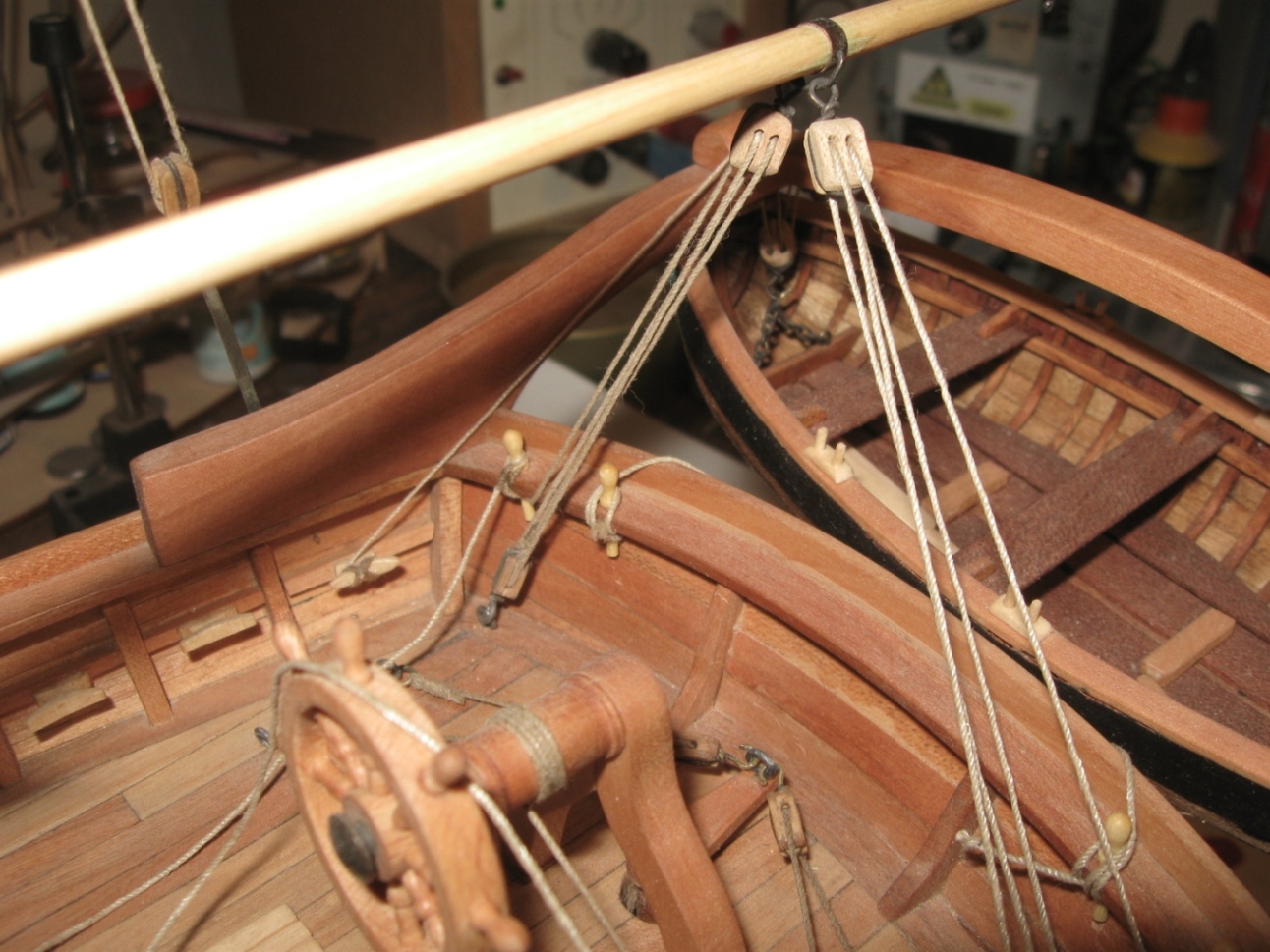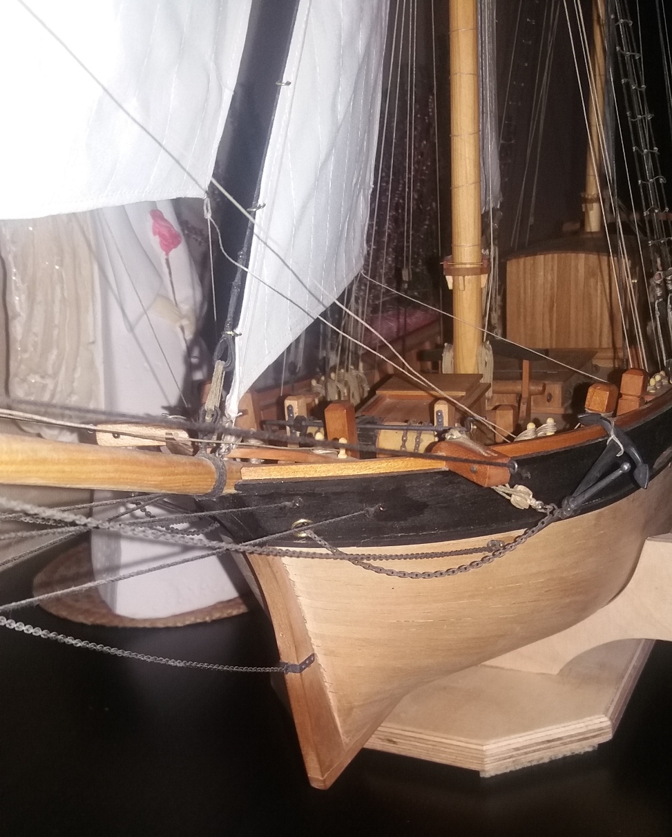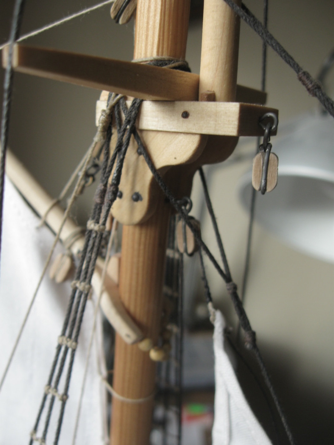 dziś zająłem się montażem i olinowaniem bomu oraz gafla bezana, szczegóły na zdjęciach: