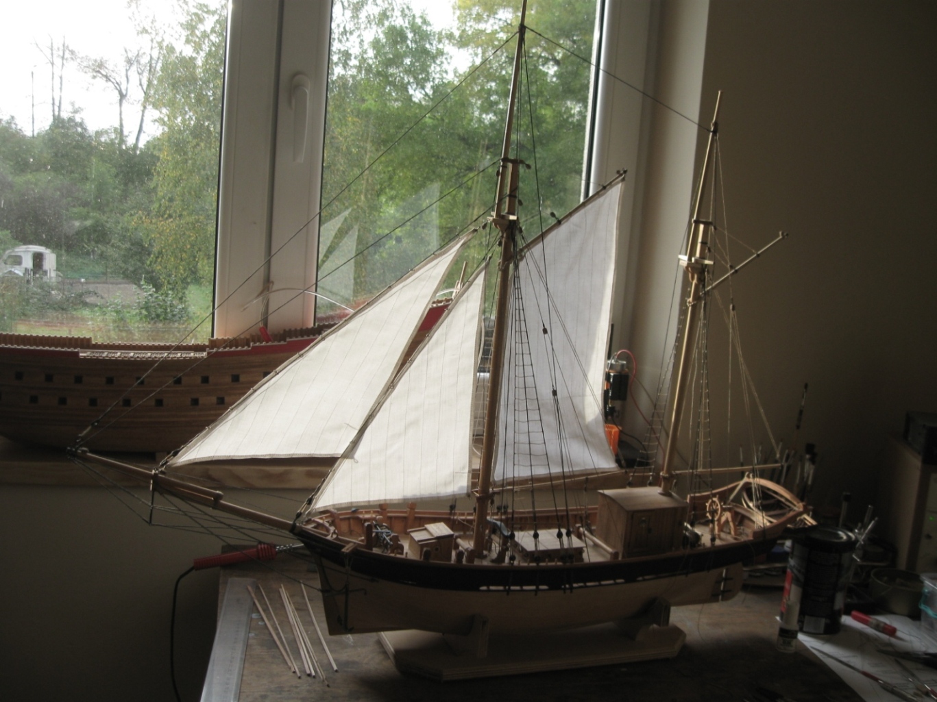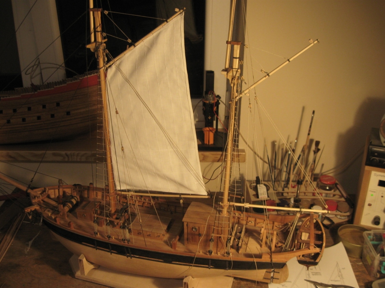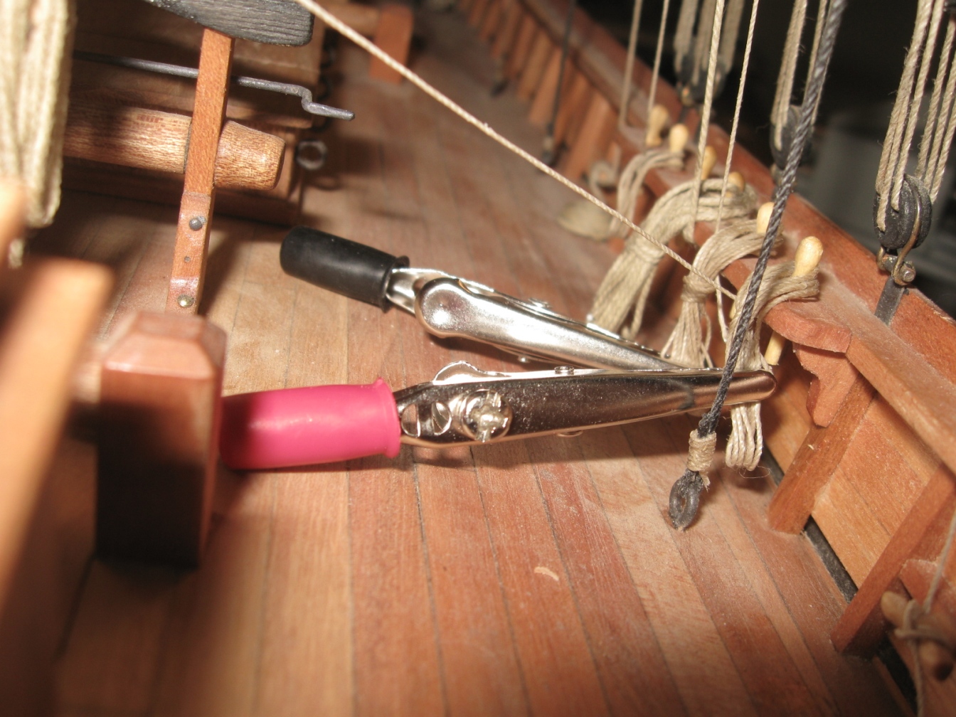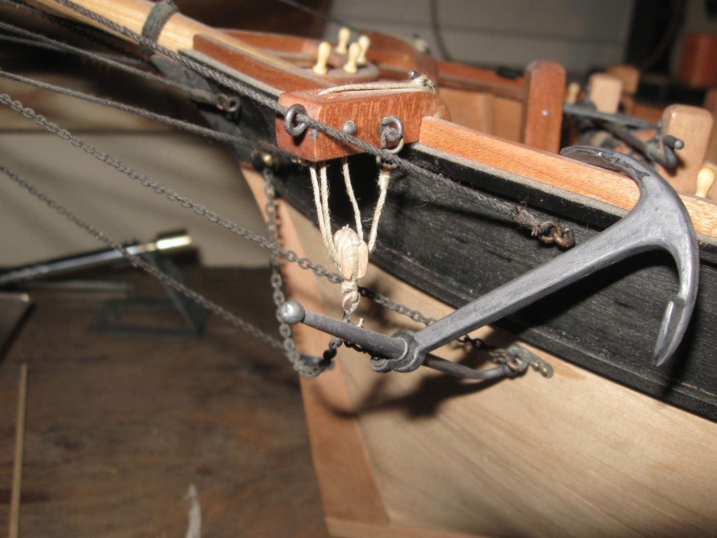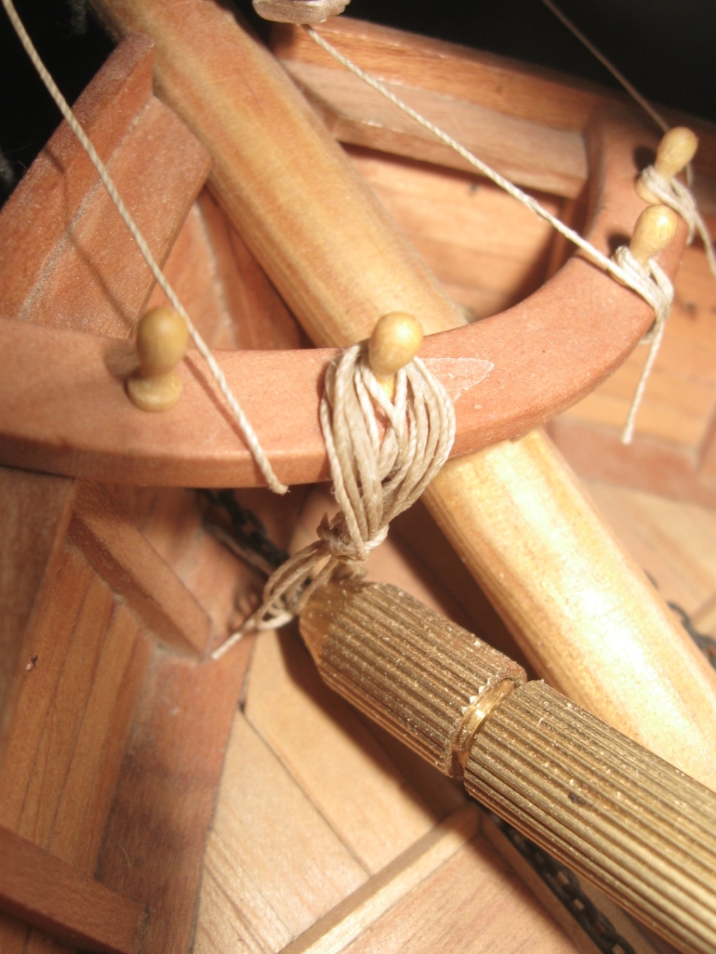 dziś zająłem się montażem i olinowaniem bomu oraz gafla bezana, szczegóły na zdjęciach: