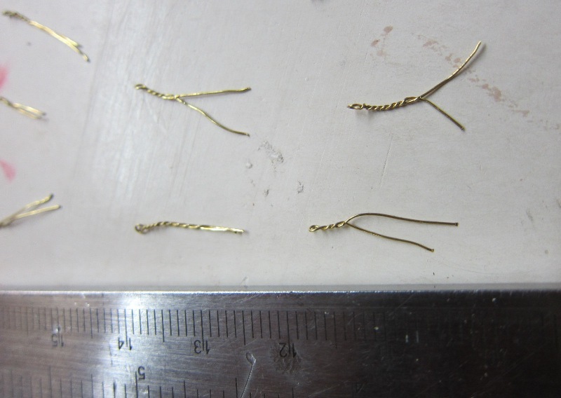 A tak na prawdę, to wierciłem otwór przelotowy o średnicy równej bokowi kwadratu, a następnie wciskałem na klej tylko zaostrzony czubek przetyczki z obu stron stengi. Następnie dociąłem i wyrównałem iglaczkiem na żądany wymiar.