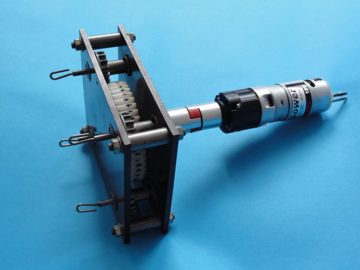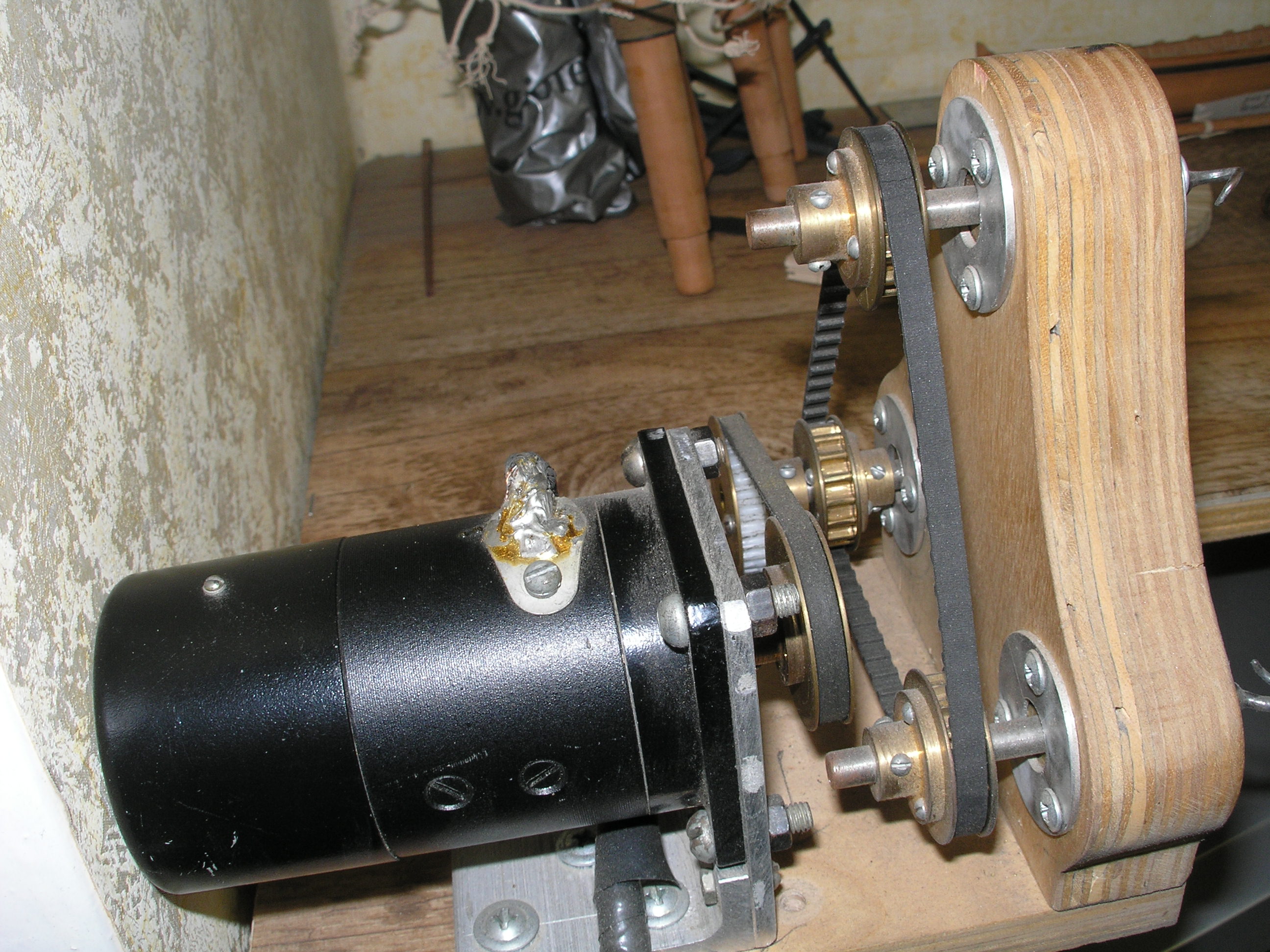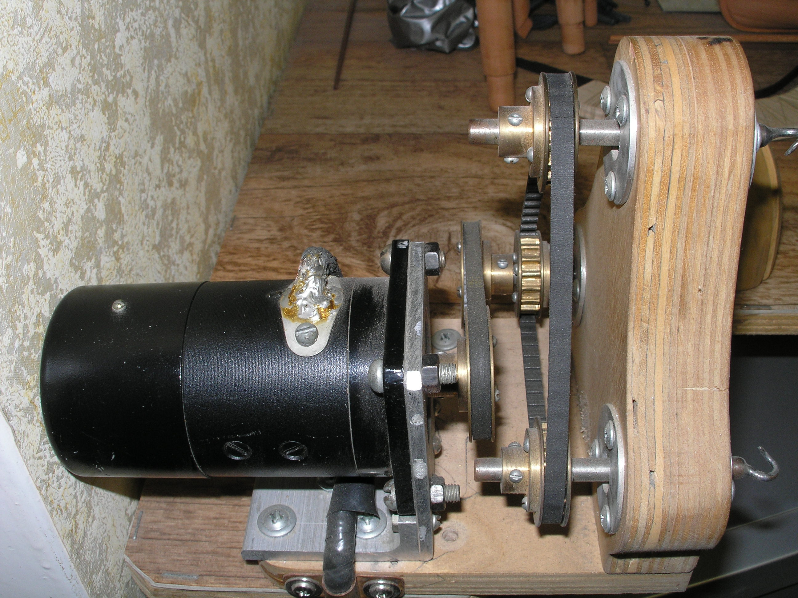 Jak widać Aleks zastosował przekładnie zębatą a przełożenie jest 1:1 .<br />Silnik 24 woltów , obroty 6000 obr/min<br />Taka przekładnia powoduje bardzo cichą pracę całego urządzenia