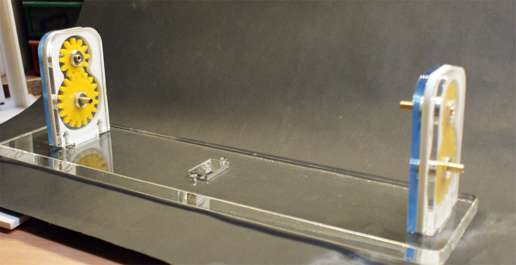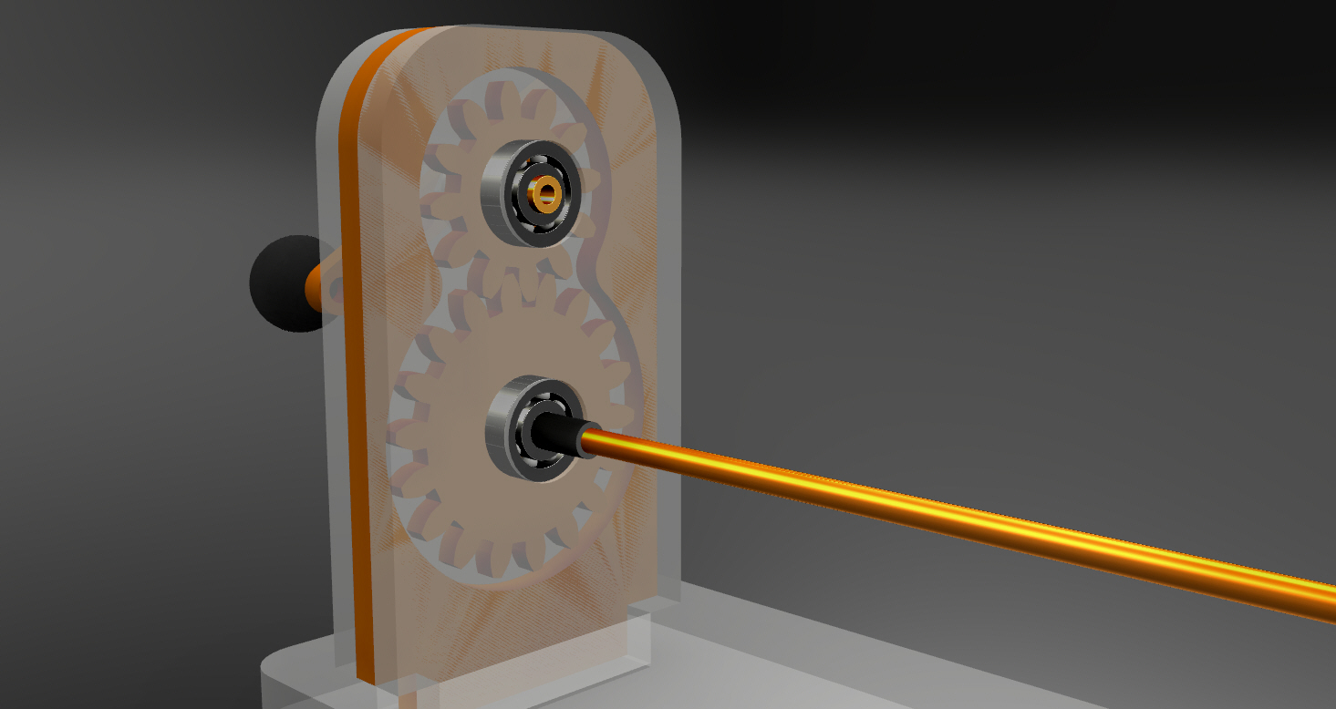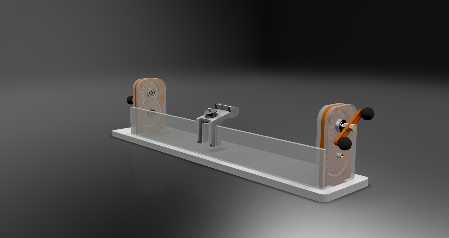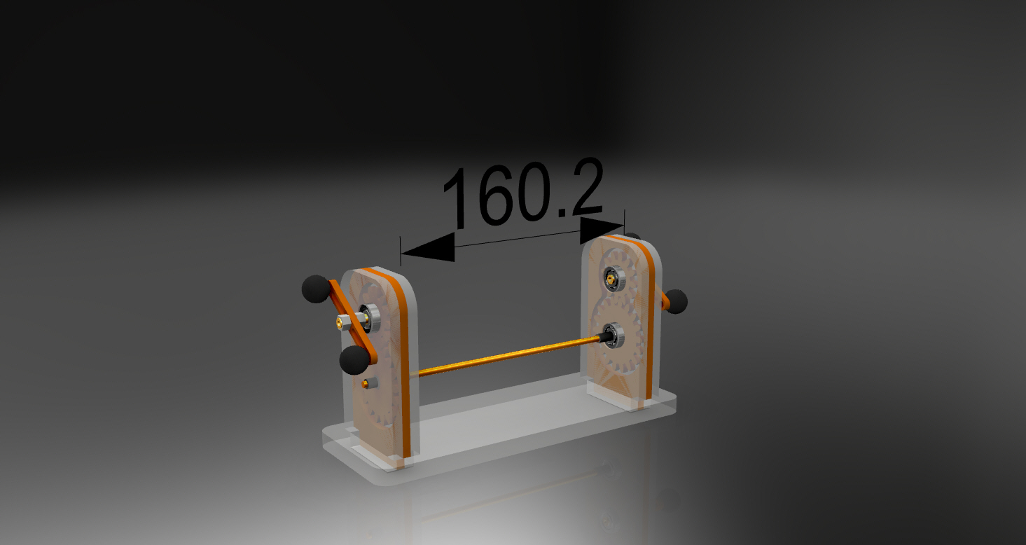 Gwoli ścisłości kręcąc korbka powodujemy obracanie się dolnej zębatki a ta jest połączona na sztywno z wałkiem i przenosi obrót na drugą stronę, następnie dolna zębatka na drugiej stronie przenosi obrót na górną a tym samym pozwala obracać się linie w sposób jednakowy. Być może na rysunku tego nie widać i może być błędnie odczytany ale takie było założenie od samego początku i nie inne. różnica między lewą a prawa zębatka będzie marginalna na poziomie kilku stopni, bo przewiduję dość dokładne dopasowanie kół zębatych.
