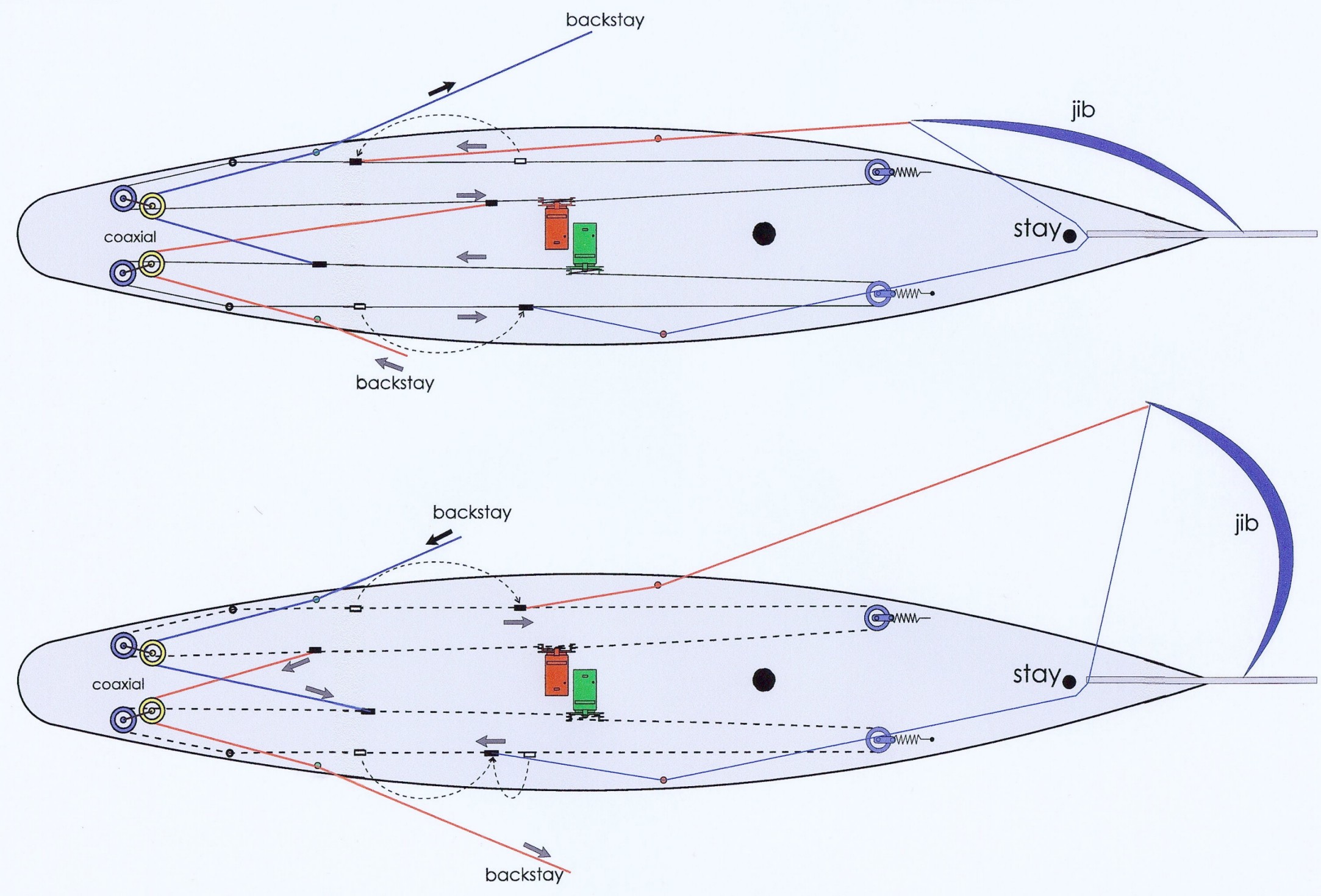 Najlepiej wtedy zastosować jedna winde . Jeżeli foki zachodzą na siebie to punkt zaczepienia przenieść koło sztagu drugiego foka . Jeżeli to niemożliwe spróbować tak ;