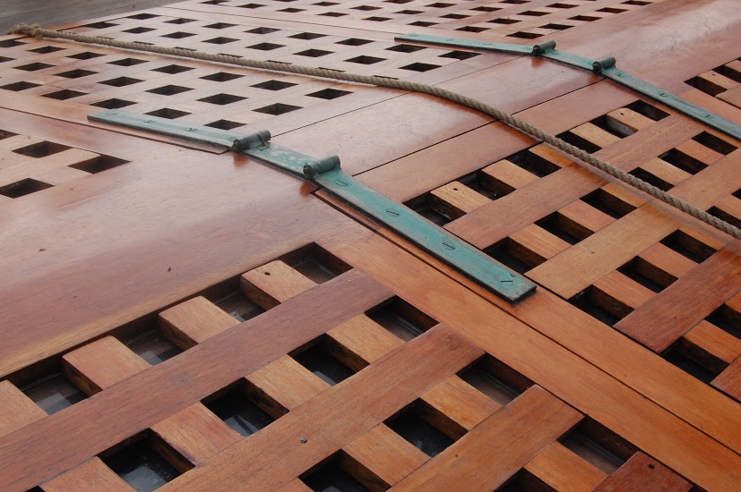 Zawiasy w świetliku to bardzo często spotykane rozwiązane , świetlik był otwierany w celu wentylacji a czasem do załadunku np. prowiantu