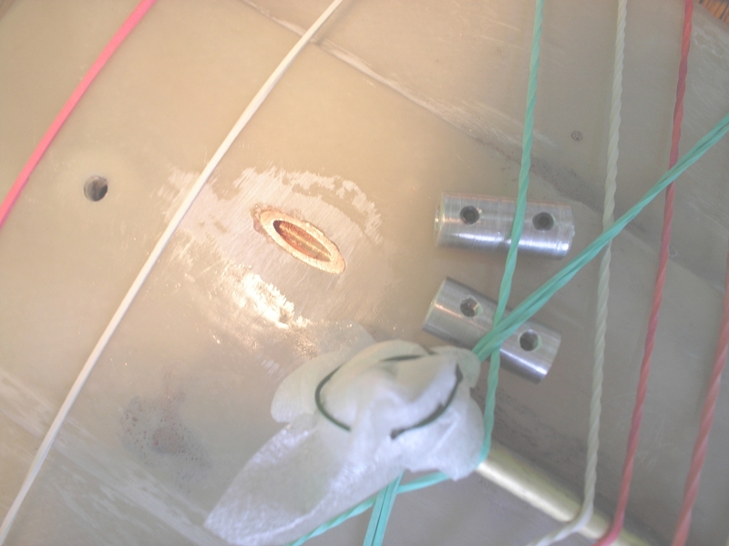 Pierwsze 'wodowanie'. Kadłub w miejscu wału i kolumny steru nie przecieka ;)