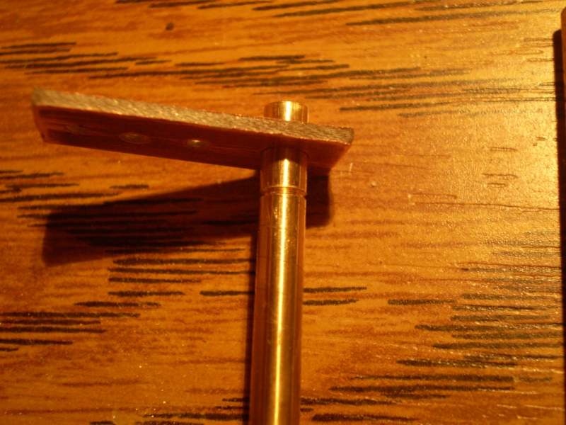 Focisze wykonania steru, pręt mosiężny fi4, wytoczony rowek pod pierścień segera a orczyk wykonany z płytki 1mm pokrytej z dwóch stron miedzią -> będzie lutowana już do gotowego ślizgu.