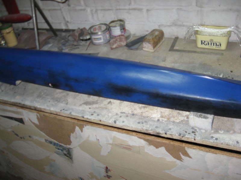 Dalsze moje poczynania nad kadłubem. Szlif szpachla, szlif szpachla, no i farba. O dziwo po pierwszym malowaniu nie było tego dużo. Drobne poprawki papierem wodnym no i do dzieła. Woskowanie, trzy kolejne po sobie warstwy, na drugi dzień warstwa poliwinylu natryskowo.