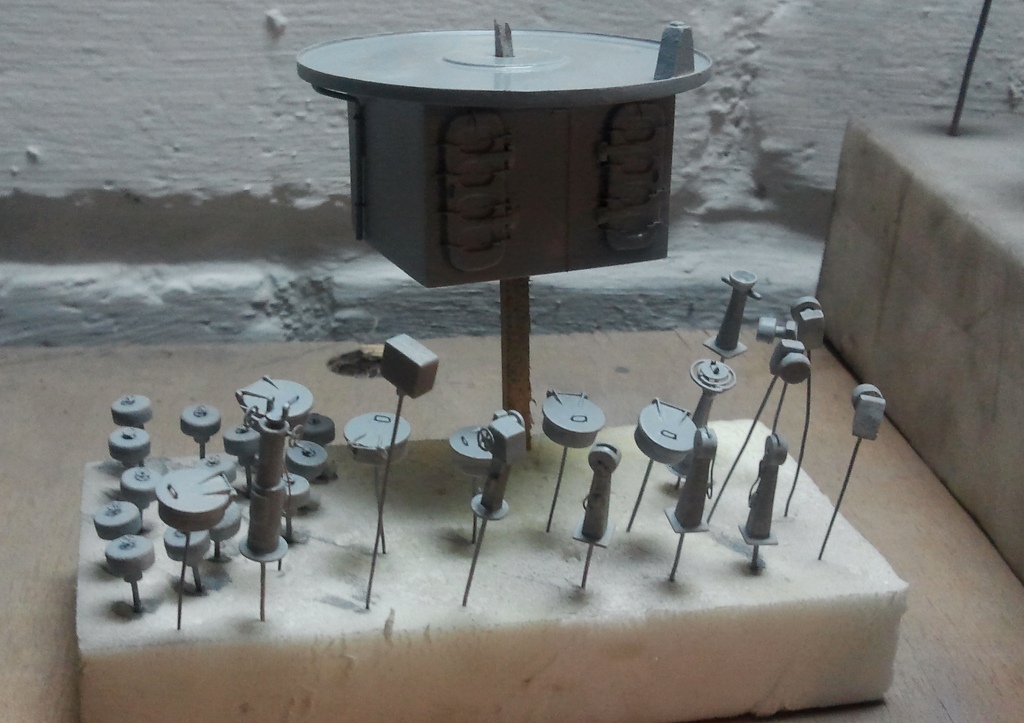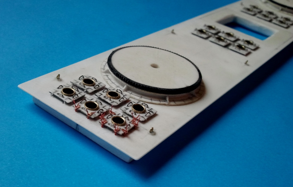 Kolejny większy element na ukończeniu to górna część nadbudówki maszynowni. Pozostało zamontować zaczepy odciągów do wyrzutni w położeniu marszowym no i reling z drabinkami. Przez ostatnie kilka dni męczyłem świetliki, które ze względu na wymiary byłem zmuszony nieco uprościć.