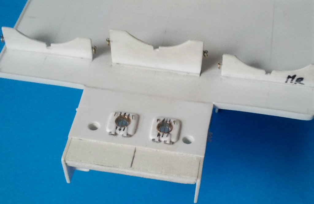 Kolejny większy element na ukończeniu to górna część nadbudówki maszynowni. Pozostało zamontować zaczepy odciągów do wyrzutni w położeniu marszowym no i reling z drabinkami. Przez ostatnie kilka dni męczyłem świetliki, które ze względu na wymiary byłem zmuszony nieco uprościć.