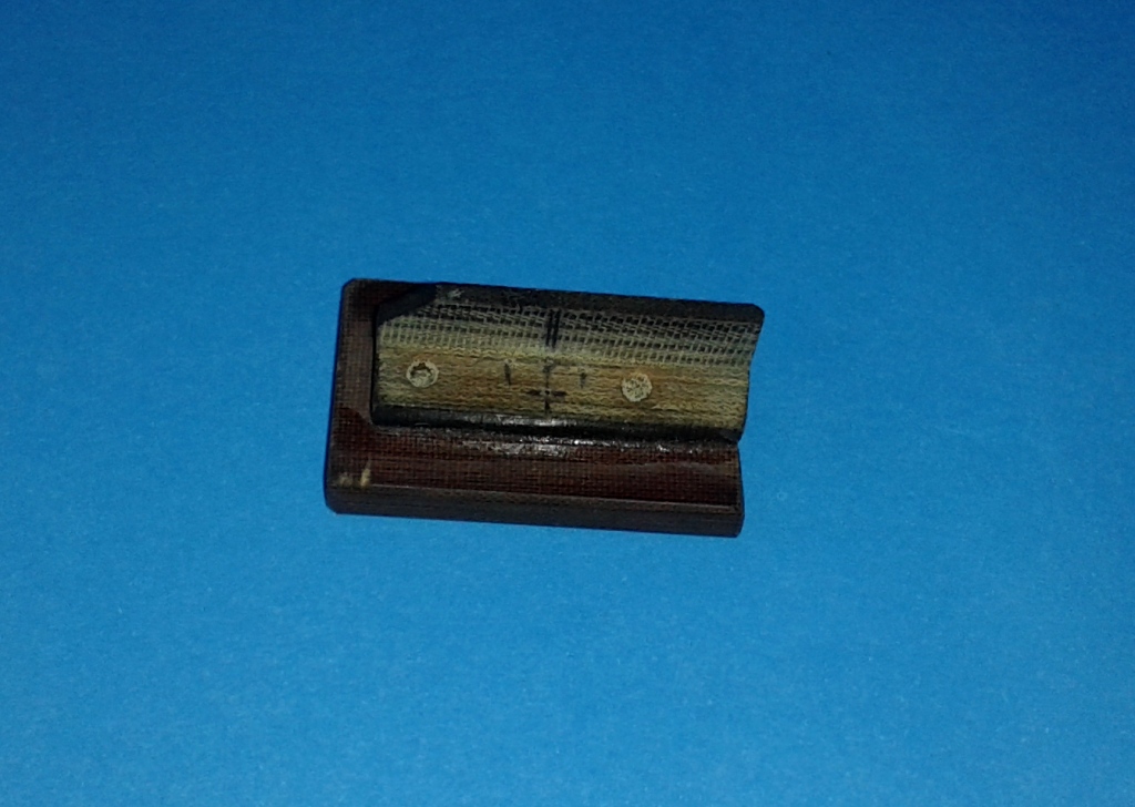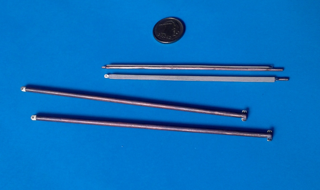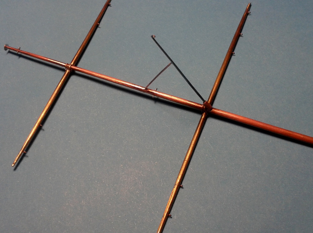 Niektóre słupki relingów posiadają zastrzały, podwójne i pojedyncze. Żeby ułatwić sobie lutowanie tego, zrobiłem z tekstolitu mały przyrządzik.