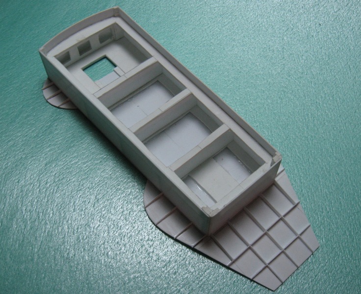 Trochę przybyło drobnicy przy podstawach armat, no i zacząłem tworzyć bryły nadbudówek.