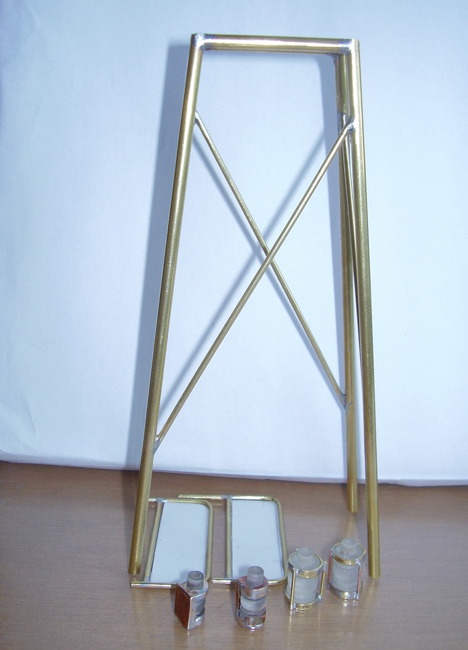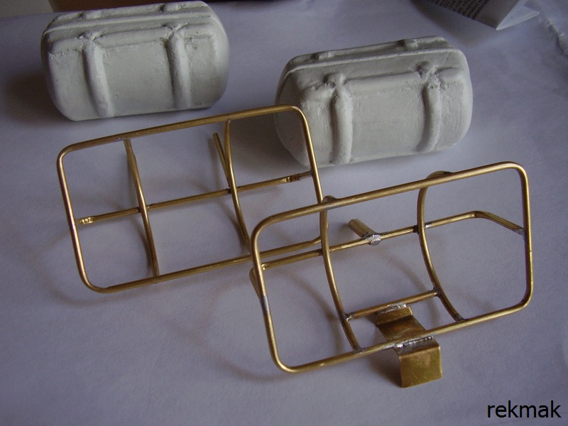 Tym razem ostatnie 2 lampy zielona i czerwona. Zamaluję prawdopodobnie permanent marker. Na zdjęciu także zrobione wcześniej elementy z rurek, z których do zrobienia jeszcze kosze na tratwy pneumatyczne. W sumie zużytych będzie 6 szt. metrowych rurek fi 2,0 i jedna fi 4,0 Zabrałem się także za nadbudówkę.