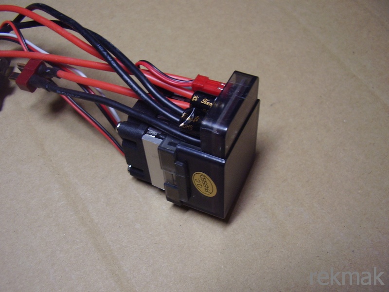 Pokład przyklejony. Kadłub poszpachlowany, wyszlifowany i pryśnięty podkładem, poprawki. W kadłub włożyłem lipola 7,4V , niedawno otrzymany regulator z AliEx, tester serw. Połączyłem i wszystko ładnie, prawidłowo działa. Zauważyłem, że 1 z kondensatorów elektrolitycznych jest wgnieciony. Można wymienić, nie ma problemu jak da się rozmontować. Nie wiem czy wgniecenie powstało w czasie transportu, montażu czy za taką niską cenę 12,5 $ sprzedają buble. Pierwszy regulator za 7,5$ leży niemy.