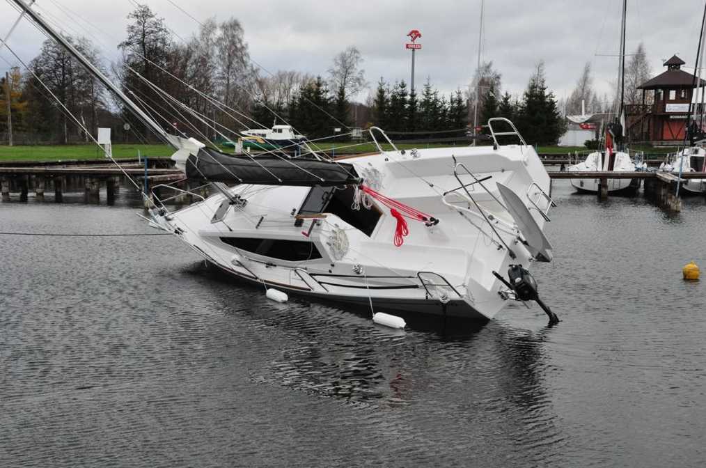 Popularny profil NACA 0012 ma dla Re=200000 mniejszy opór niż dużo cieńsza (75%) NACA 009. Dziwne, cieńszy profil daje większy opór. Projektowanie to próba optymalnego rozwiązania pewnych problemów. Opisana w wielu mądrych książkach metoda określania zrównoważenia jachtu polegająca na porównywaniu środków geometrycznych rzutów żagli i podwodzia zawiera kilka grubych błędów już w założeniach. No bo kiedy jacht płynie bokiem? Często zafascynowani możliwościami pięknego rysowania przy użyciu programów typu CAD zapominamy o treści. Przykładem może być np. bardzo ładny jacht znanego polskiego konstruktora. Na zdjęciu jest podczas prób statecznościowych. Przy przechyle 40-45 o koniec płetwy sterowej (tu podniesionej) nawet nie ma szans na tyknięcie wody, to czym ten biedny sternik ma sterować przy takim przechyle. Ale jacht ma tak modne teraz przełamanie kadłuba, szeroką jak stodoła rufę i jest opisywany w samych och, ach itd.