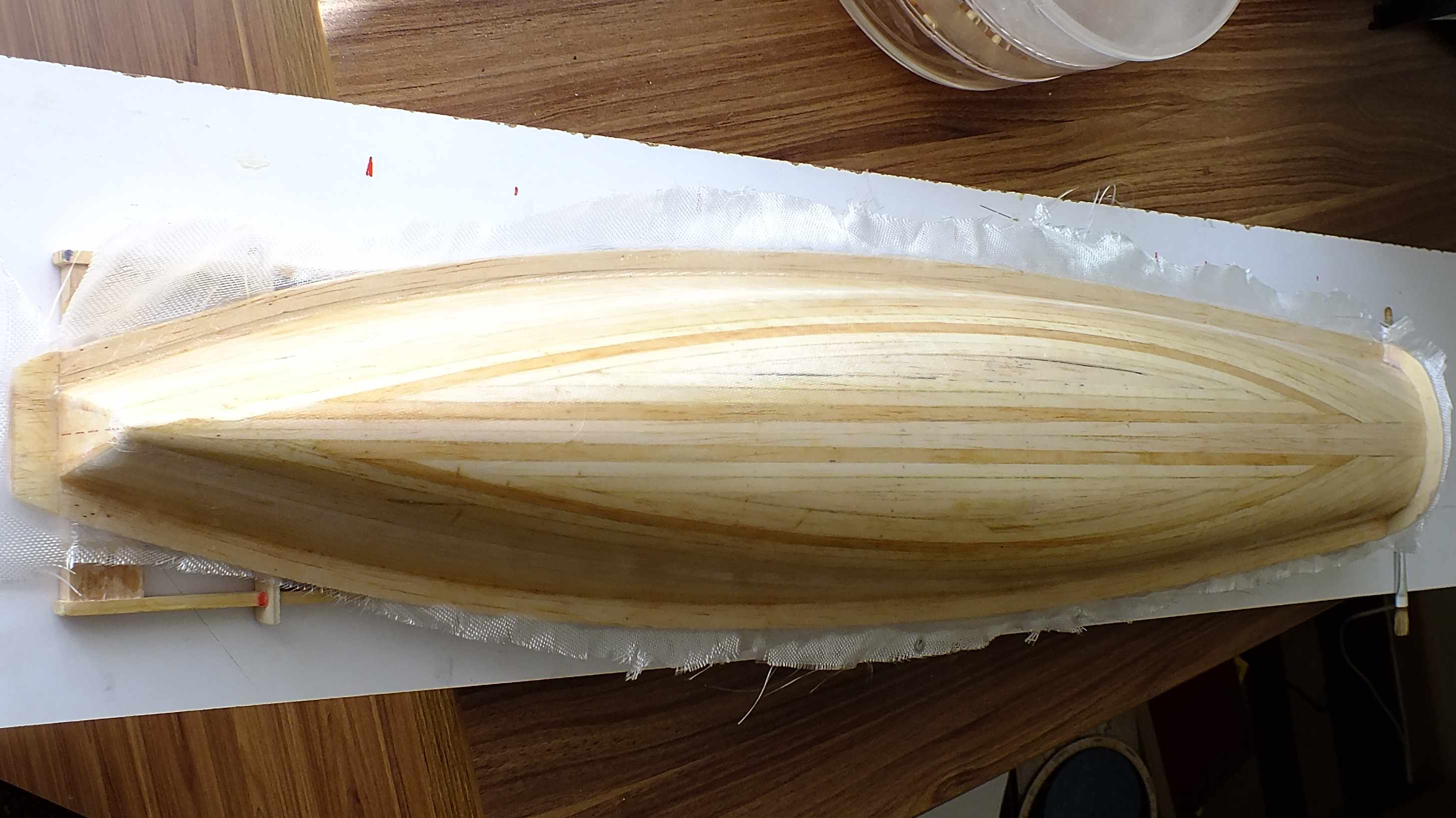 Dobra pogoda w piątek (temperatura i dzięki temu możliwość wietrzenia mieszkania), pozwoliła na ruszenie z laminatami. Kopyto kadłuba zostało polaminowane tkaniną 80 g/m^2 z wykorzystaniem Epidianu 53. Teraz najmniej przyjemna część przygotowywania kopyta do formowania, szpachlowanie i szlifowanie itd.