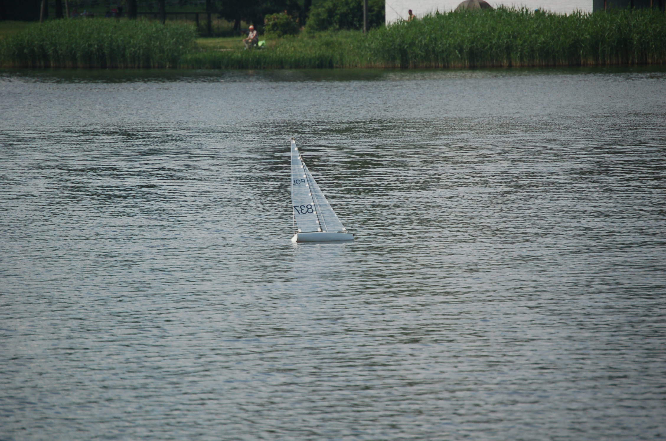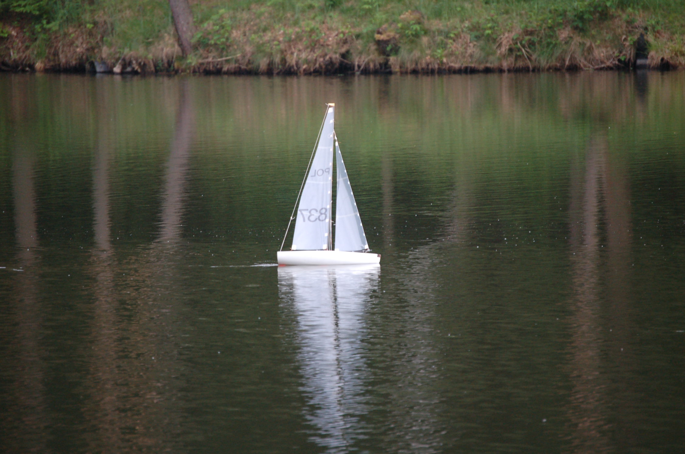 Dzisiaj testowałem zmiany w łódce. Modyfikacje z ostatniego postu poprawiły zachowanie jachtu na wodzie. Po pierwszym pływaniu (za radą kolegi) maszt został przestawiony maksymalnie do tyłu i był to strzał w dziesiątkę. Zresztą pływanie w dwa jachty jest znacznie fajniejsze co pokazują zdjęcia.