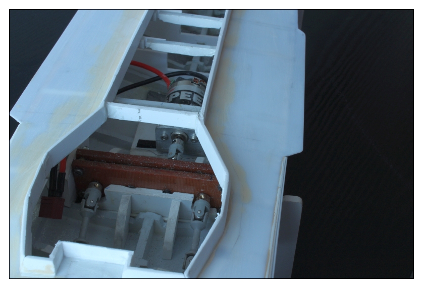 Mniejsza o te obroty. Budowałem kadłuby też tą metodą z HIPSu (na CA) ale w ostatnim modelu gdy był gotowy, próby szczelności wypadły pomyślnie. Po przerwie w pływaniu, na festynie zaczął nabierać wodę. Nie wiem czy uderzenie ślizgu w burtę czy drgania silników spowodowały pęknięcie spoin burt pod linią wodną po obu stronach. Zaklejenie epidianem na pasek wąskiej,cienkiej tkaniny szklanej uszczelniło spoinę. Od wewnątrz nie ma dojścia. Tym wpisem chcę uczulić na takie niebezpieczeństwo.