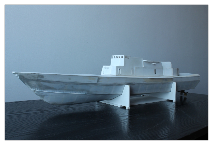 Model wykonany jest w skali 1:70, długość 813mm, wręgi -spienione PVC 5mm, poszycie z HIPsu-1mm.