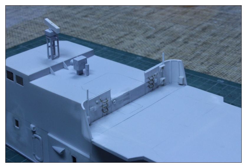 Jedyne co mnie razi to ta nienaturalnie gruba antena radaru nawigacyjnego. Zmniejsz jej grubość i to kilkakrotnie, bo wygląda jak drewniana belka OPA a nie smukła antena szczelinowa radaru nawigacyjnego... ;)