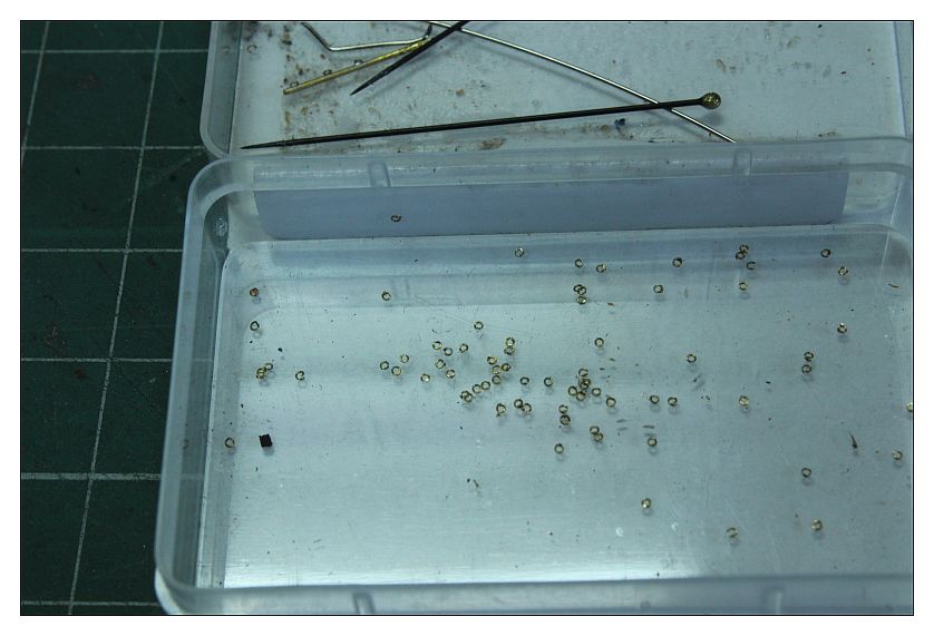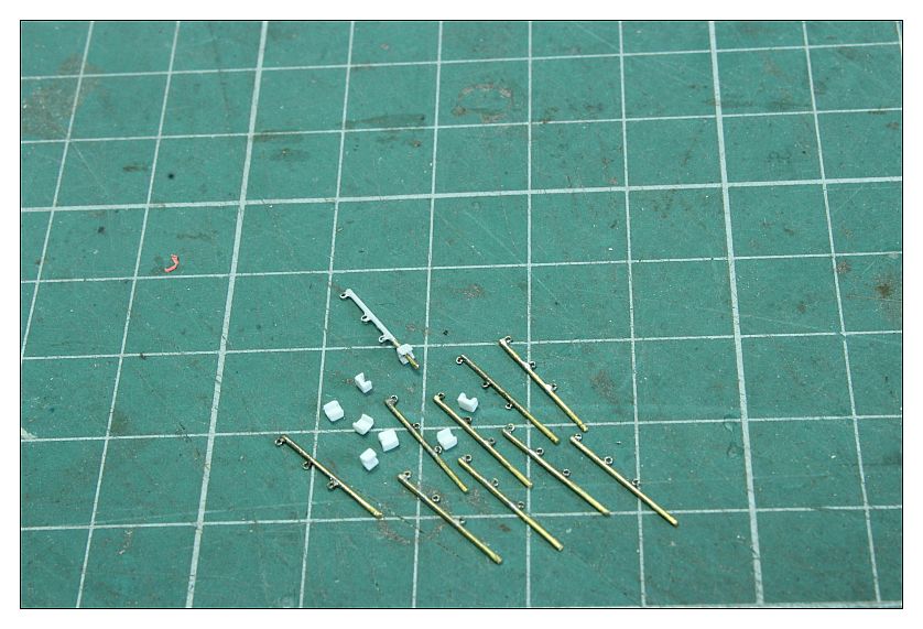 robiłem z pręta mosiężnego 0,5mm ,a te oczka przelotki na linę z drutu 0,15mm nawinięte na pręcie 0,4mm,lutowane do słupka.Poniżej ,tak na bieżąco kilka fotek.