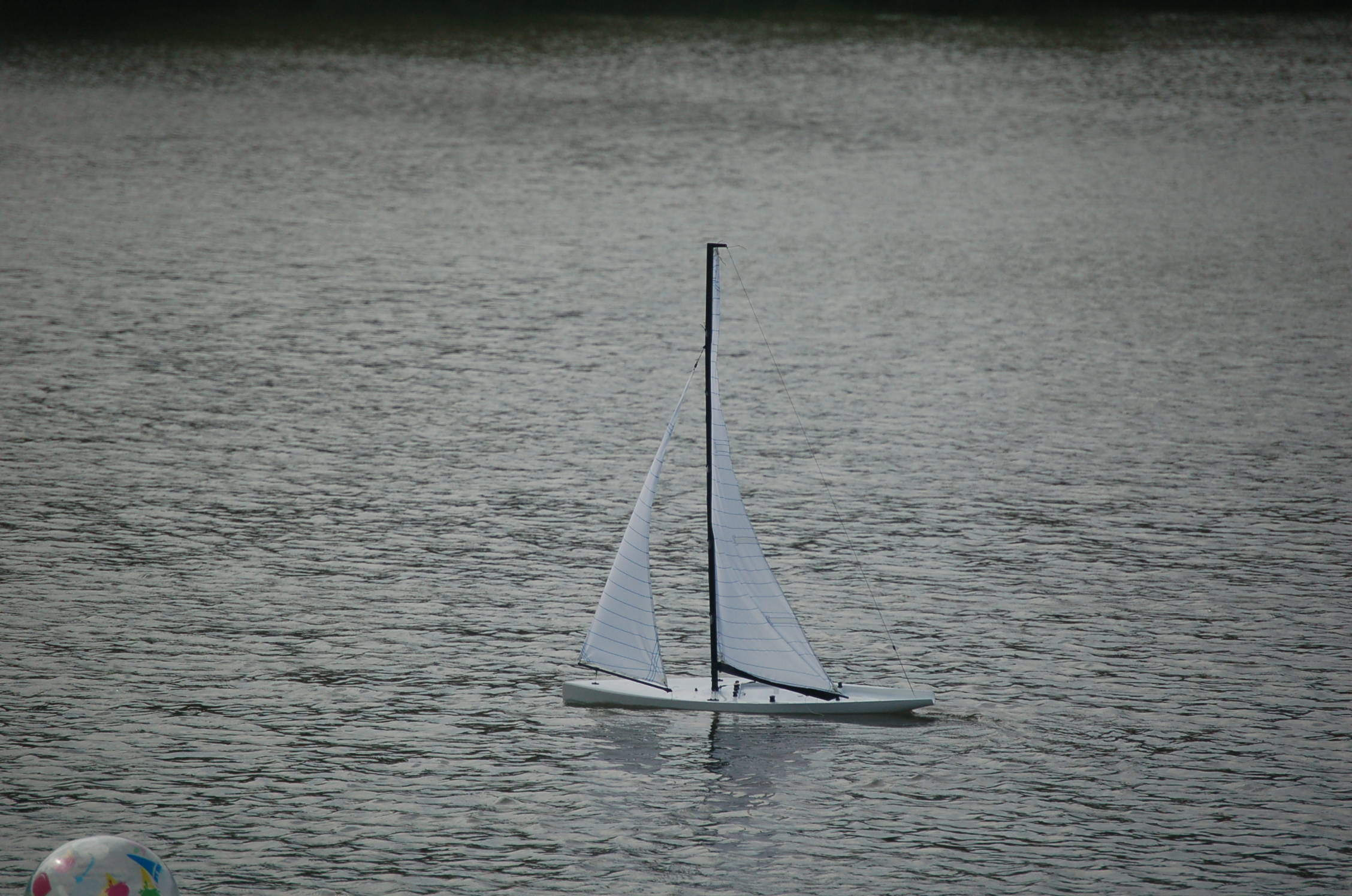. Pomimo to jestem zadowolony, bo przy bardzo słabym wietrze i "zestawowych" żaglach, łódka ładnie reagowała na ster i pływała.