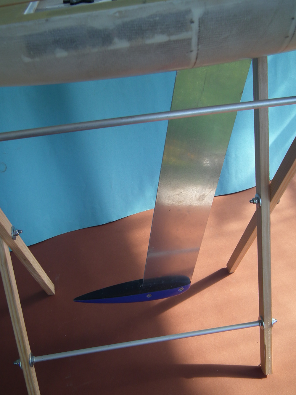 Na zdjęciu widać kształt balastu . Jest on u góry płaski , w założeniu ma to działać jak końcówka skrzydła w odrzutowcach pasażerskich . Zresztą w jachtach regatowych oceanicznych stosuje się przy balaście charakterystyczne skrzydełka które pełnią taką samą role .
