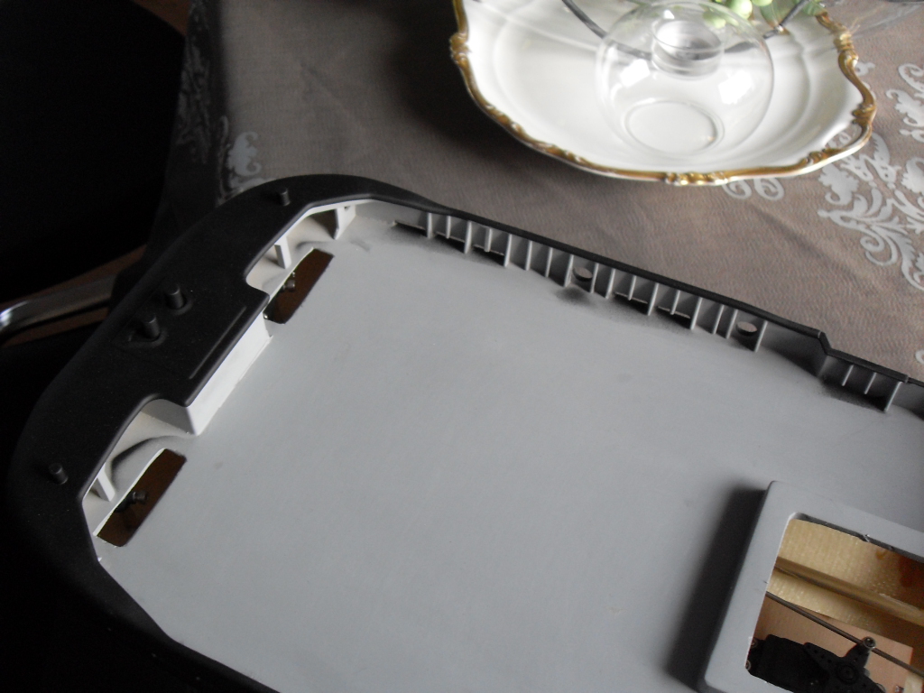 [list=][/list]Pokład ma być zielony ,wzmocnienia burt szare(mogą zostać ładna farba podkładowa-ten sam kolor) ,tu stanąłem z pracami .Co robić ? przecież tego nie da sie okleić ,myślałem żeby taśmą okleić tak do połowy wzmocnienia ,psikać aero,później pędzelkiem szare poprawić.Pędzel nie wchodzi w grę nie mam talentu .Za wszelkie sugestie będę dzwięczny