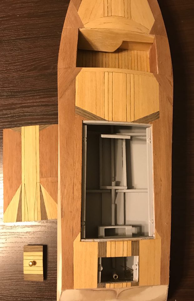 Dno, burty i część pokładu będą lakierowane, paski fornirowe będą na pokładzie.
