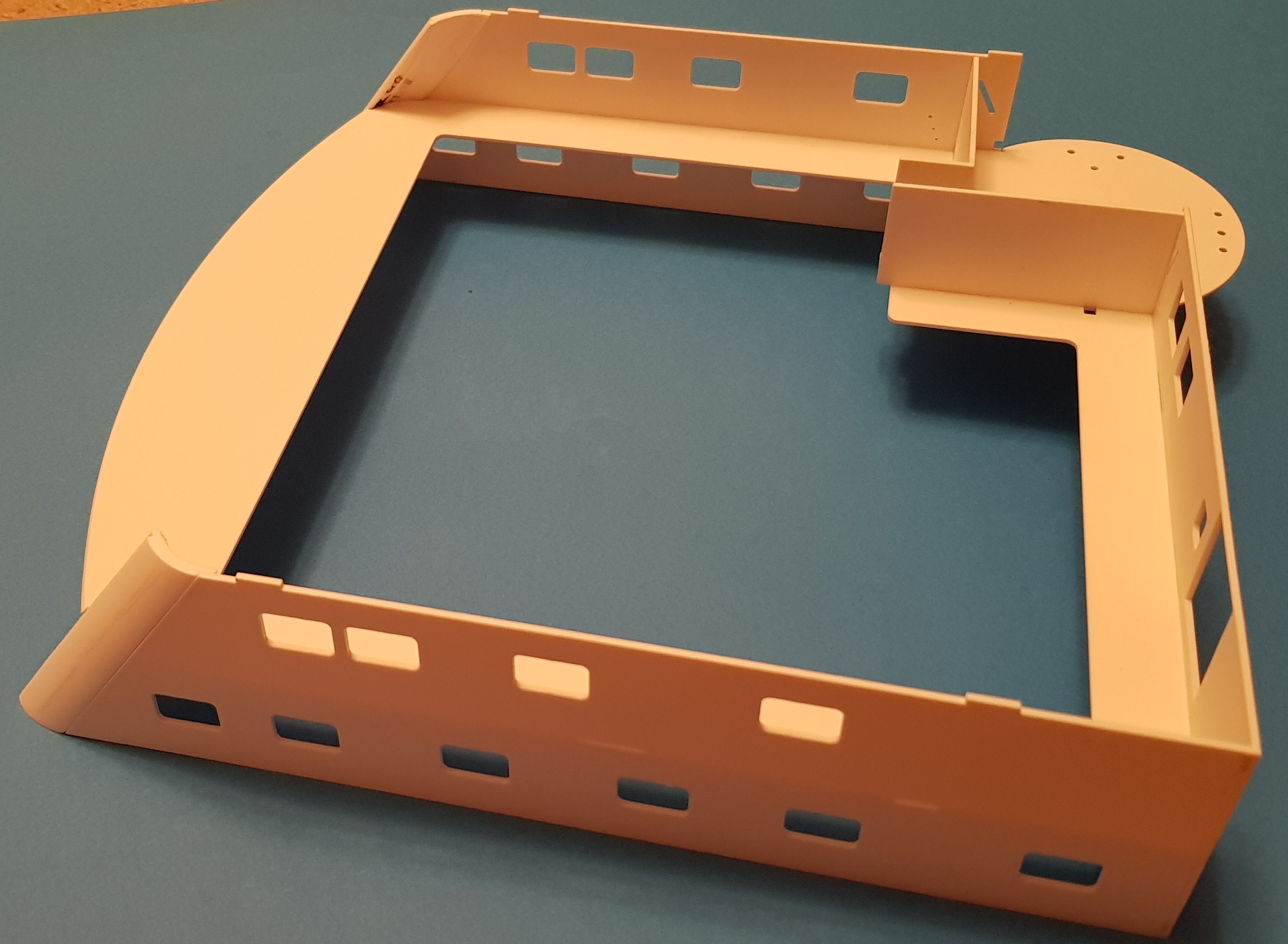 Mam nadzieję,że to właściwy dział forum. Chciałbym przedstawić budowę modelu statku badawczego o nazwie Edda Flora w skali 1:75. Model mam być w zamyśle RC.Nabyłem laminatowy kadłub z pokładem i plany (4 arkusze A0). Materiał na pokład to będzie HIPS 2mm wzmocniony od spodu spienionym PCV 6mm. Nadbudówki to będą frezowane części z HIPS'a różnej grubości.