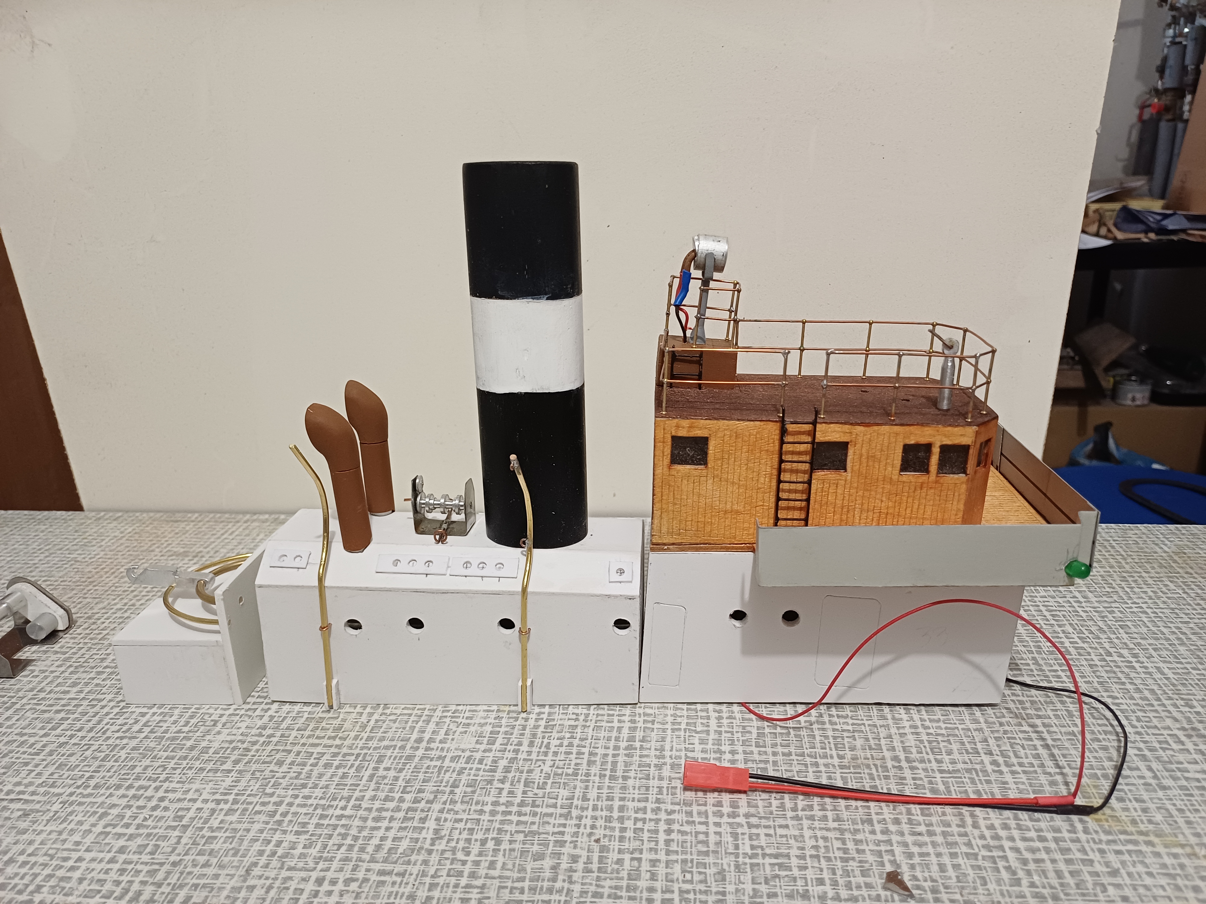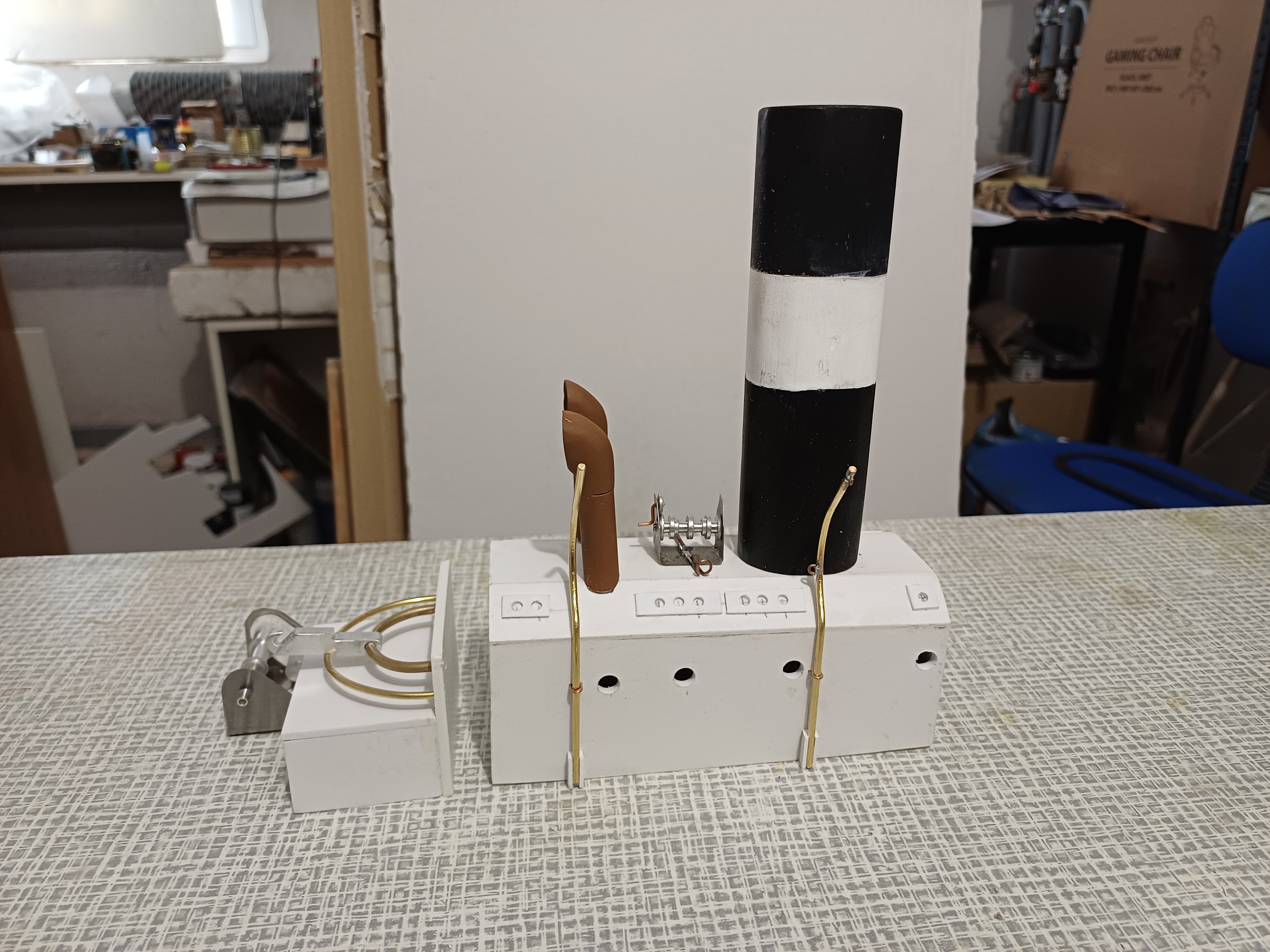 Nie mogę rozgryźć napędu windy kotwicznej. Silnik jest na dole na podstawie ale na widoku z góry wygląda, że wał jest nad osią główną a może to coś innego.