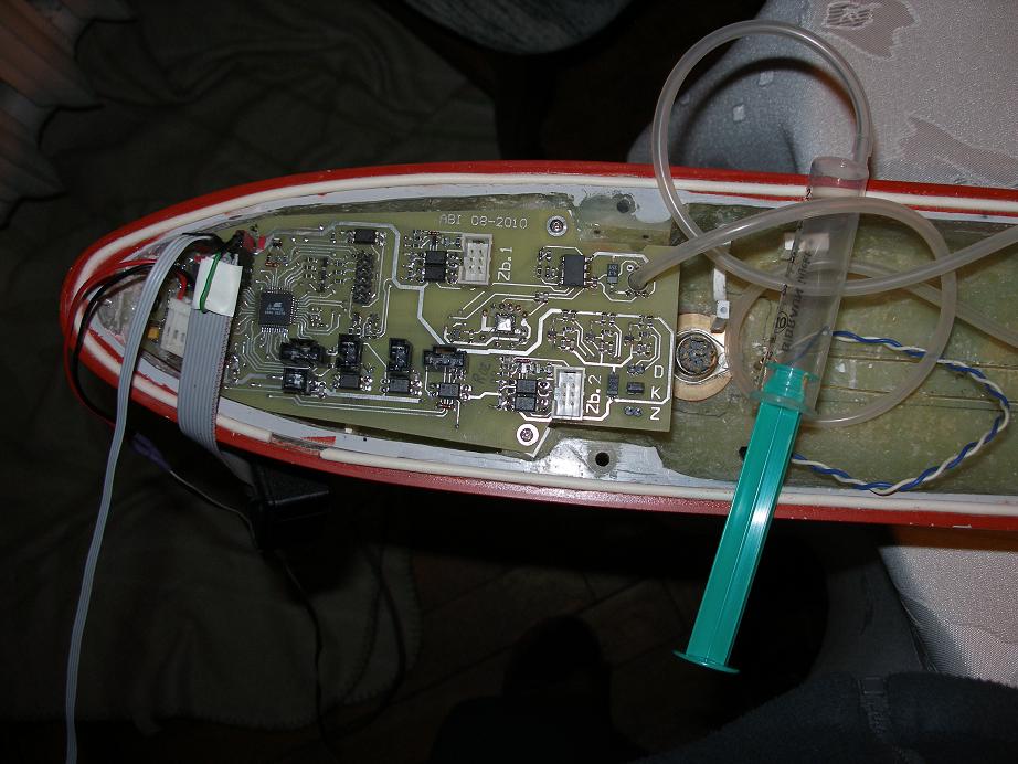 2. Sprawdzić działanie czujnika wody na pokładzie nalewając wody do kadłuba.