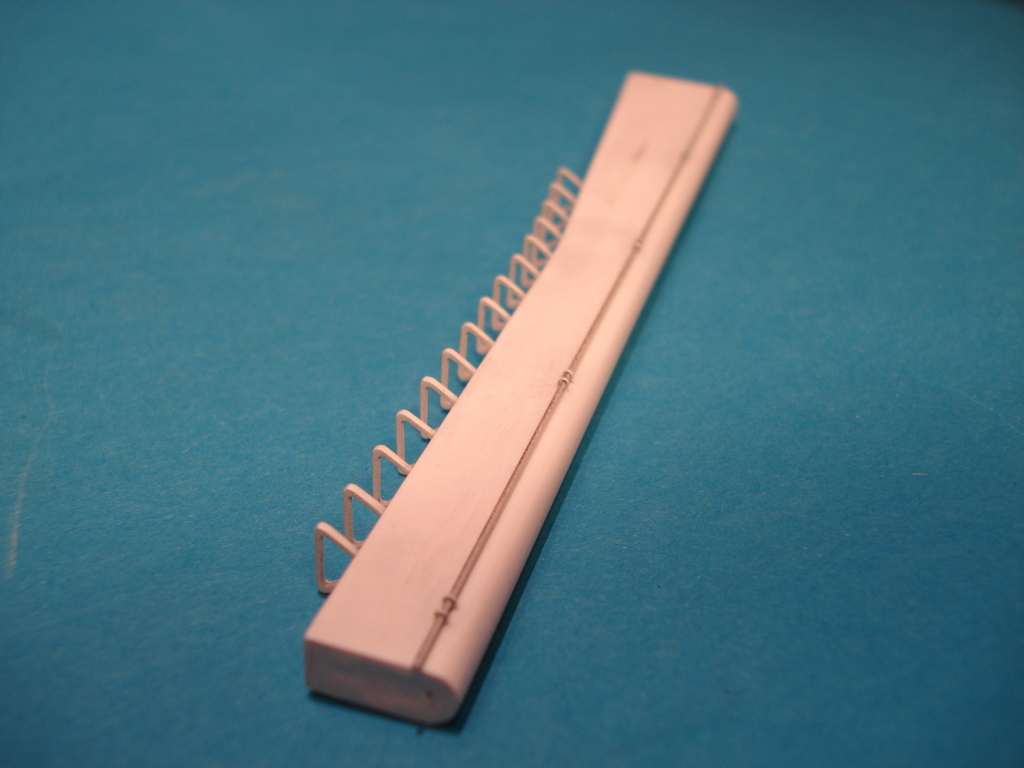 Zrobiłem z kawałka polistyrenu 0,25 mm , 0,5 mm i rurki plasticzanej trzon masztu . Wykonawszy "szkielet" masztu , owinąłem go na kształt cienkim polistyrenem.