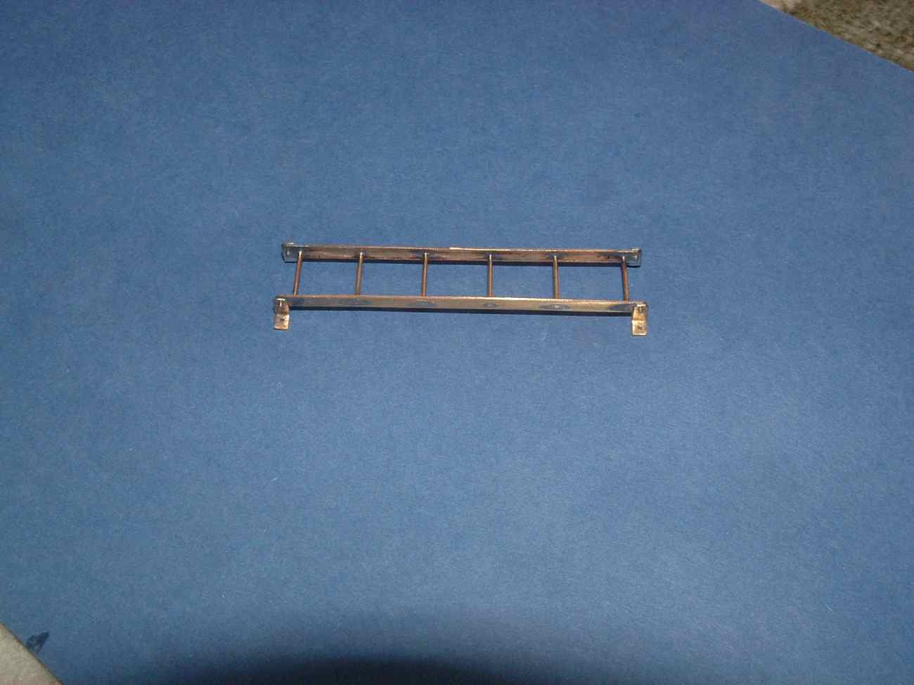 Dziś rozpocząłem „produkcje” drabin pierwsza z nich prowadząca na górny pokład sterówki gotowa , blaszka mosiężna 0,4mm trochę drucika cyna kwas do lutowania no i oczywiście lutownica