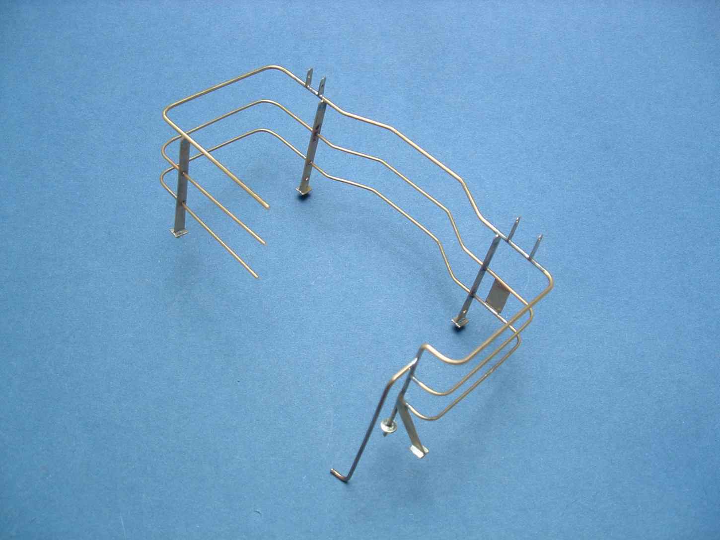 Pierwsza część relingu gotowa, trochę upierdliwe było wyginanie drucików i beż szablonu się nie obyło bo wygięcie 3 identycznych kształtów z drutu 0,8mm nie jest takie proste jakby się mogło na pierwszy rzut oka wydawać, słupki zrobione są z blaszki 0,4mm z wypiłowanymi szpikulcami pod podstawką do lepszego umocowania relingu w pokładzie , całość jak na razie osadzona na(sucho)