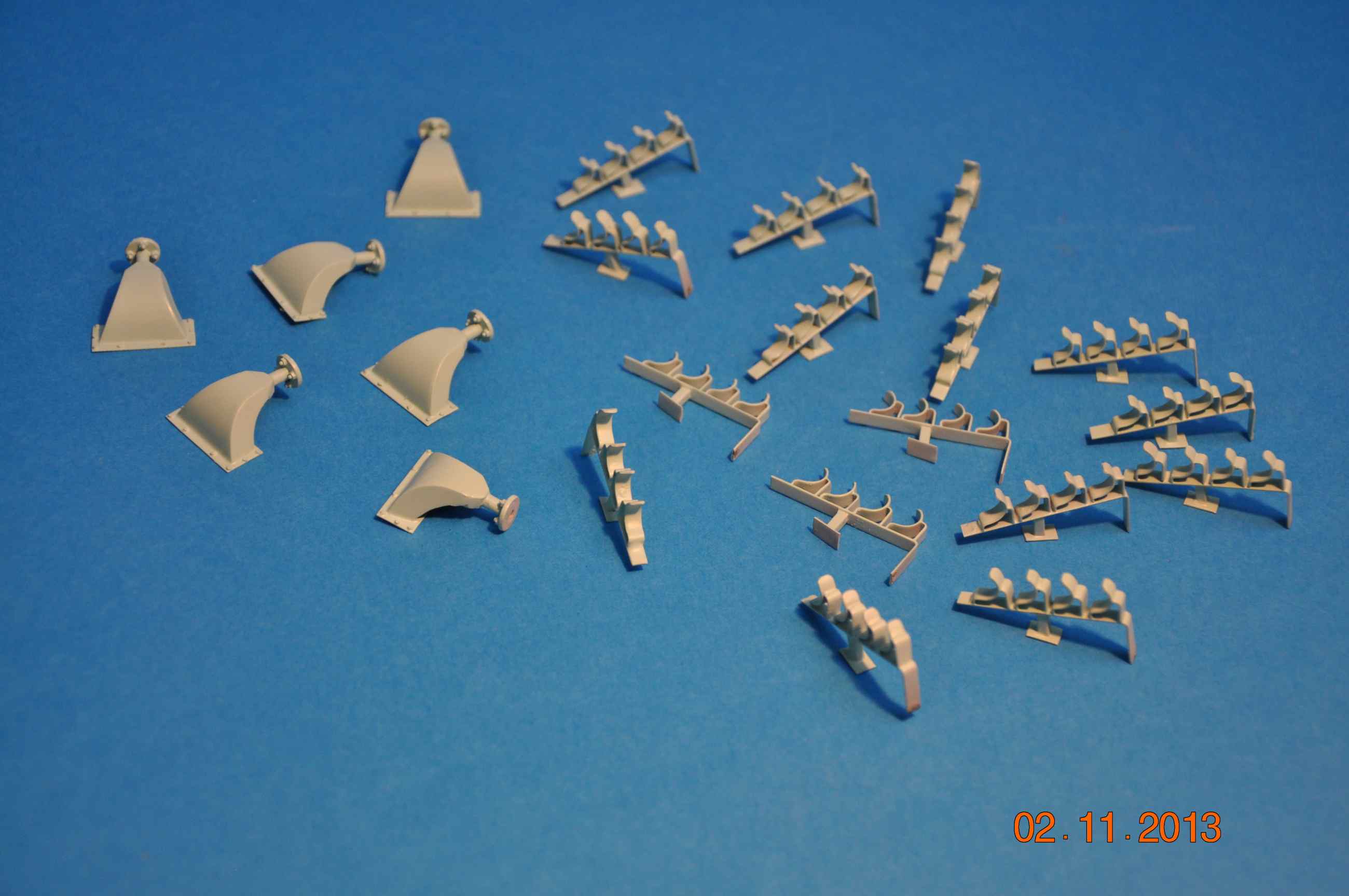 Nie za dużo czasu ostatnio miałem ale cos tam znów udało się zrobić , pomalowane dysze kurtyn burtowych jak i stojaki do węży , wszystkie te elementy będą teraz montowane na wewnętrznym nadburciu , wytoczyłem tez z aluminium łączniki i zakończenia węży trzeba teraz je pomocować do węży i ułożyć na stojakach .