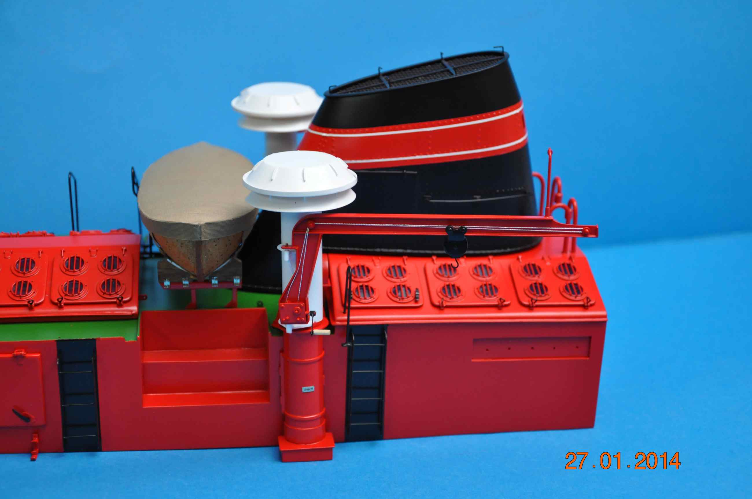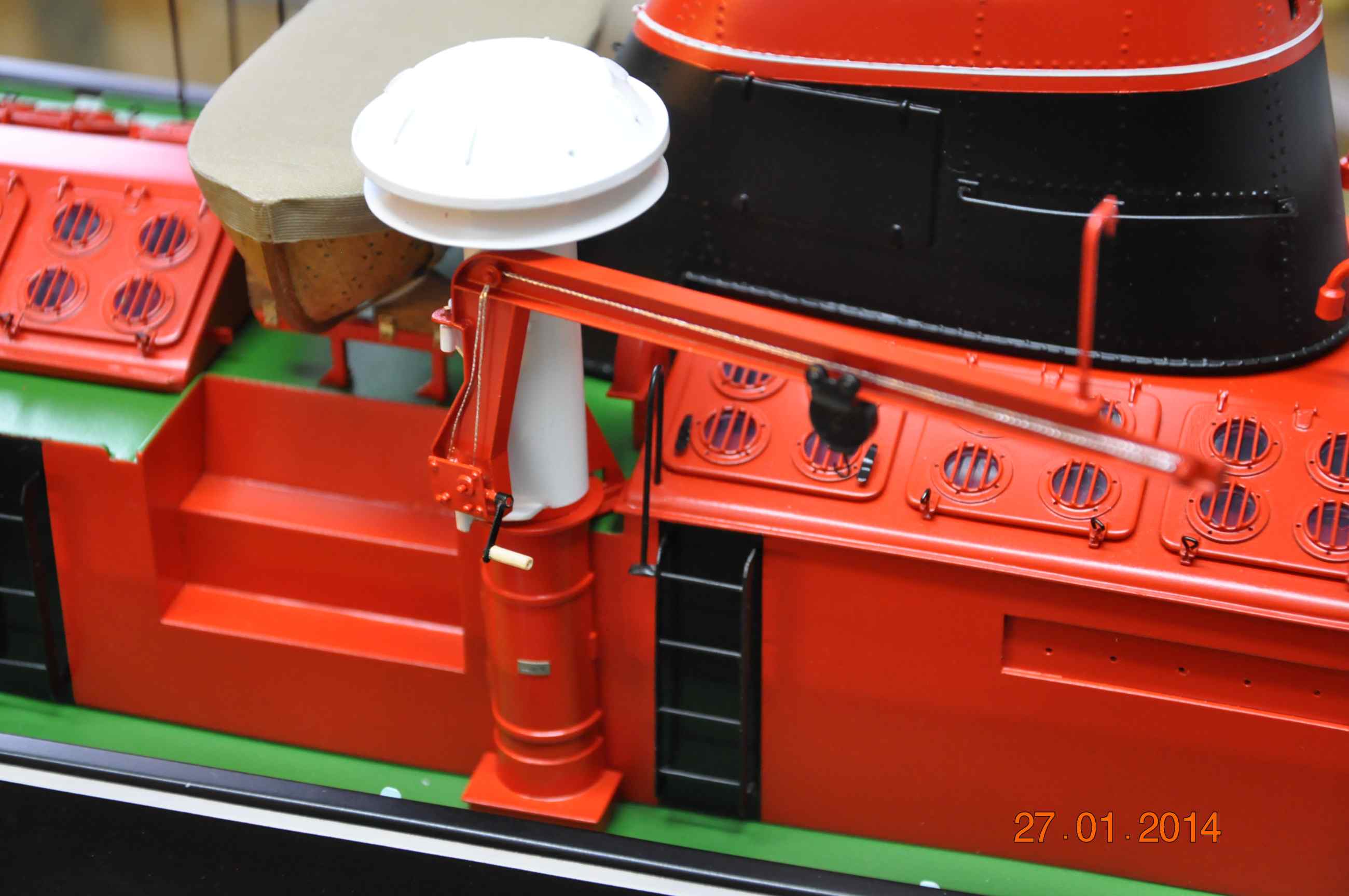 , lampy wokół nadbudówki , rurka fi2mm, 2x2mm kwadrat mosiężny i aluminiowe pierścionki wytoczone całość polutowana wraz z kołkami montażowymi