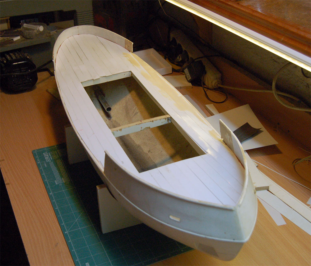 Witam Pokład jest juz "prawie" gotowy , teraz walka z nadburciem i dopasowanie nadbudówki do pokładu który jest wrescie taki jak powinien być. Teraz prace ruszą z miejsca.