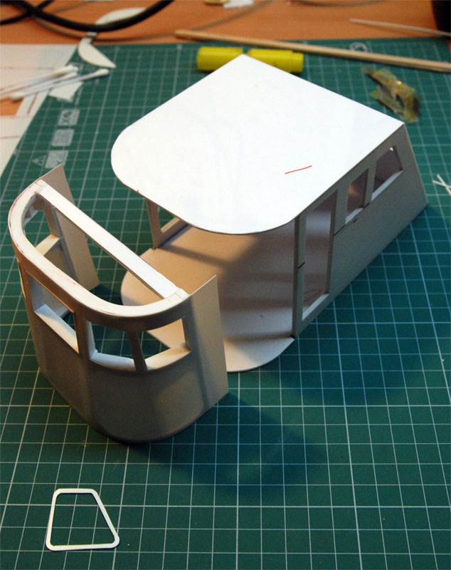 Witam prace nad holownikiem staneły w miejscu z powodu.......no własnie sporych zmian konstrukcyjnych w stosunku do orginalnego H300 jak i do planów modelarskich nr3 opracowanych przez Pana Stanisława Woźniaka Dokładniej zmiany dotyczą nadbudówki maszynowni i swietlików oraz haka holowniczego. W orginale (opieram sie na planach modelarskich rozmiar nadbudówki jest bardziej trapezowy a więc od strony rufy jest węższy niż posiada obecny holownik Daniel. NA rysunku poniżej czerwonym kolorem pokazuje jak znaczne są różnice. Następna sprawa to "daszek swietlika" który występuje w seryjnym holowniku a w Danielu brak. Następna sprawa że otwory swietlików sa okrągłe a nie prostokątne jak w seryjnym holowniku. zdjęcie nr 2. Jak widać zmian jest bardzo wiele i w zasadzie należało by stworzyć nową dokumentacje techniczną całej nadbudówki oraz sterówki. Łoże i cały hak holowniczy jest też wiekszy co zaznaczyłem szarym kolorem na rysunku jak i osie podstawy mocowania do nadbudówki. Wszystkie te zmiany wpłyną na końcowy wygląd Holownika a co za tym idzie budowa modelu bedzie ciekawsza. Przyznam sie że abym te wszystkie zmiany mógł zrealizować muszę najpierw wkleić pokład do kadłuba i tu mam problem gdyż pokład jest płaski a powinien być wypukły. i zdaje się że z tego pokładu co mam zrezygnuje a zrobię nowy tylko nie bardzo mam pomysł jak sie do tego zabrać gdyż pokład jest wygięty w 2 płaszczyznach i jedynie metoda słomkowa należało by to zrobić. I tu mam prośbe do Was może ktoś ma lepszy pomysł jak sobie z takim pokładem poradzić ? bo mnie już głowa puchnie i... pustka nadal w głowie.