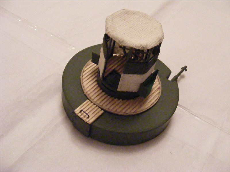 Wieża armatnia prawie gotowa. Do zamontowania pozostają światła pozycyjne (zakupiłem zbyt duże) i koło ratunkowe na frontowej stronie osłony stanowiska sterowego.