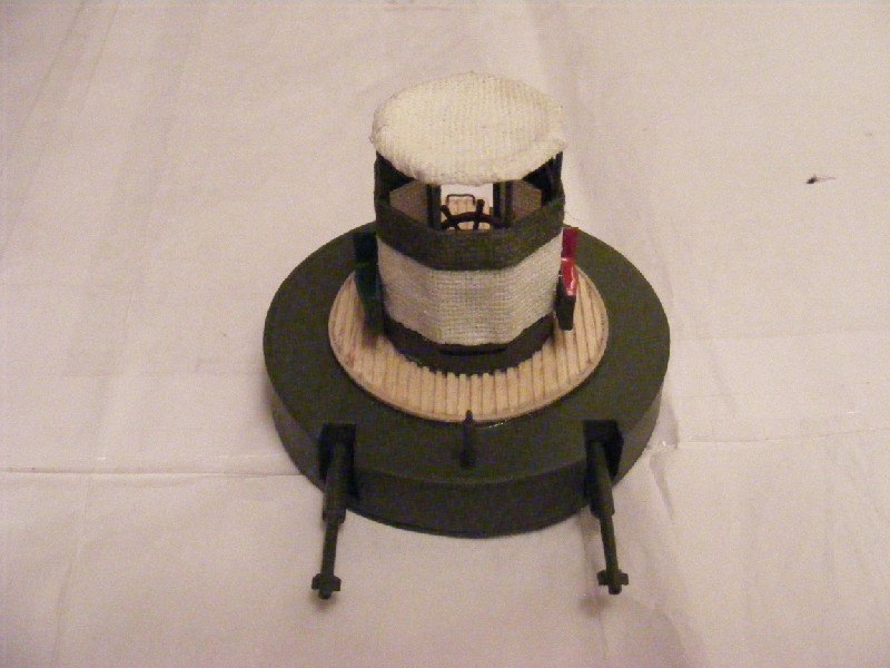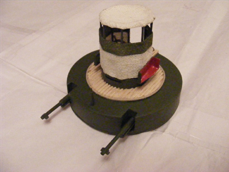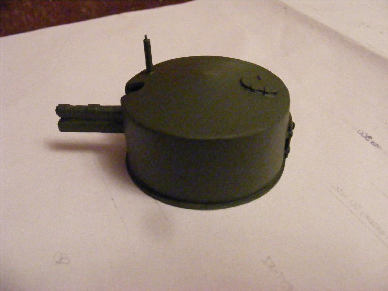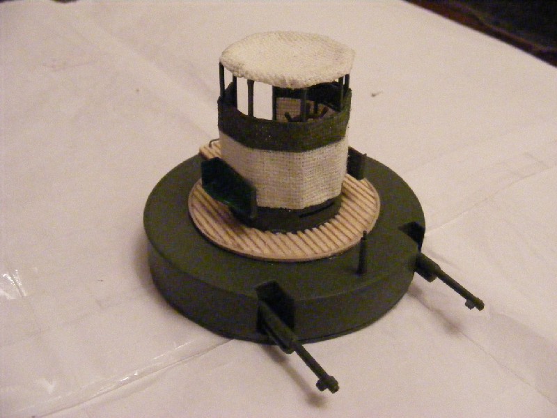 Wieża armatnia prawie gotowa. Do zamontowania pozostają światła pozycyjne (zakupiłem zbyt duże) i koło ratunkowe na frontowej stronie osłony stanowiska sterowego.